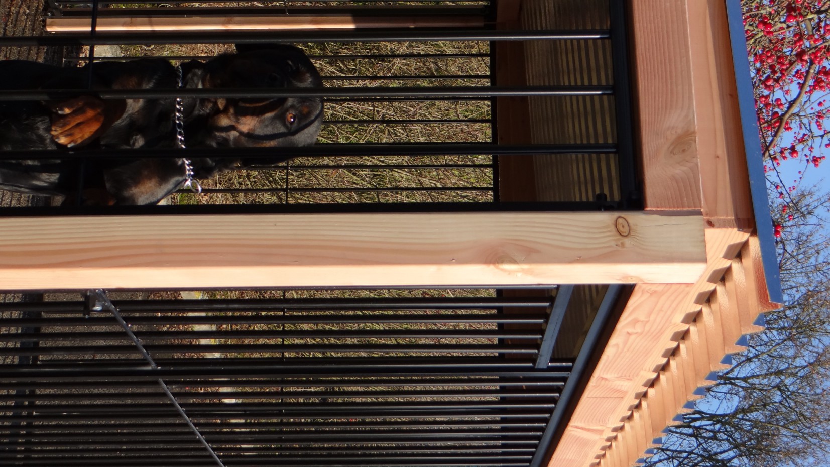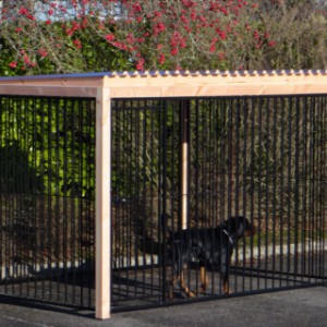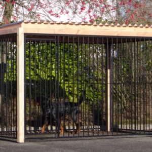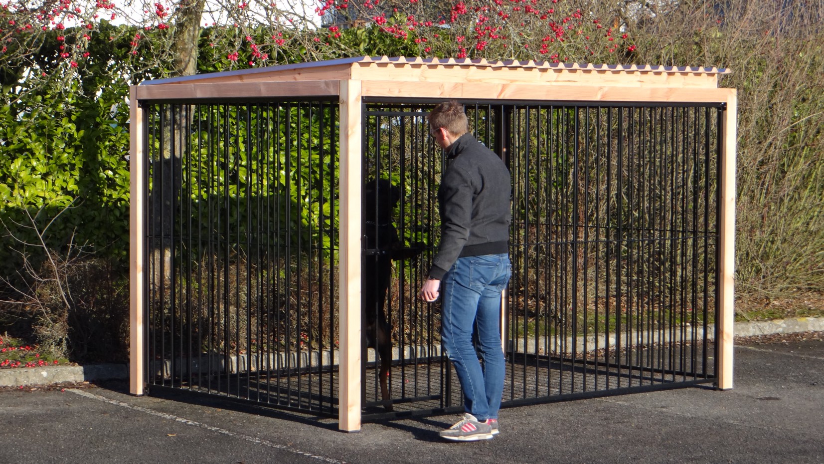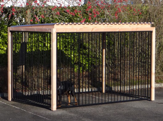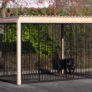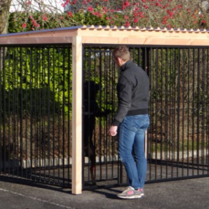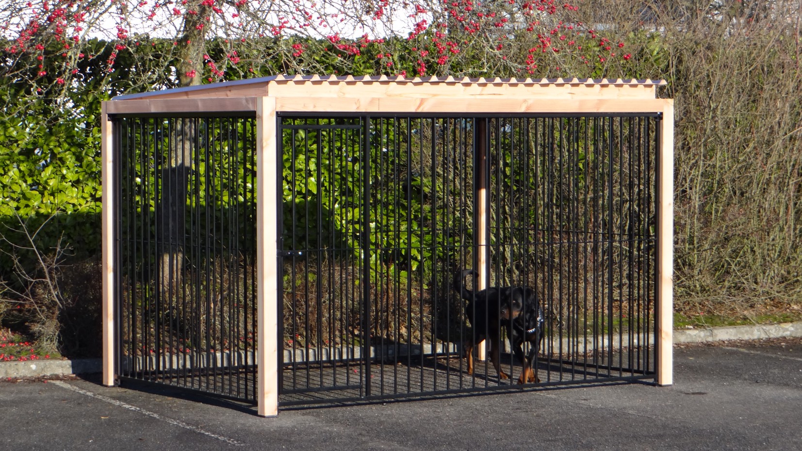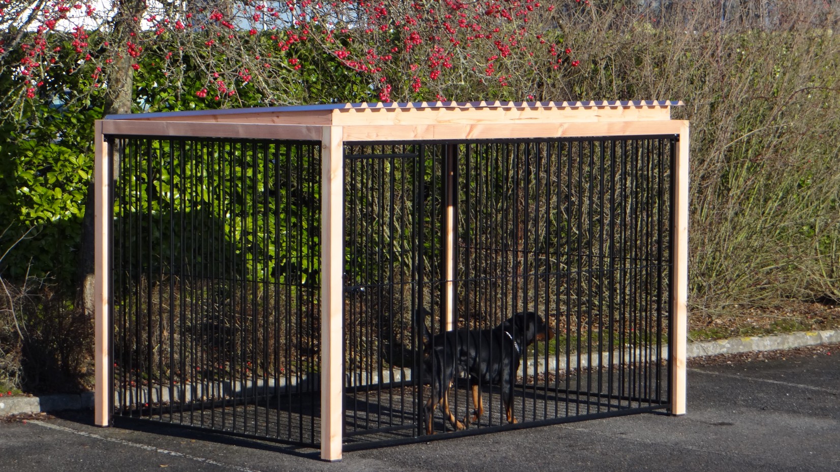Ce chenil FLINQ noir en bois de Douglas est un chenil très solide pour votre chien .