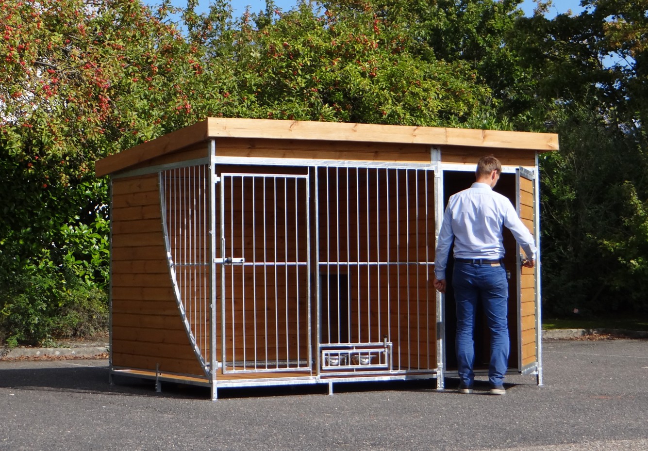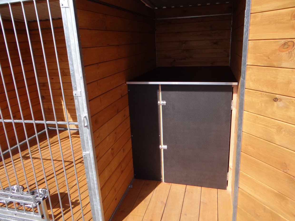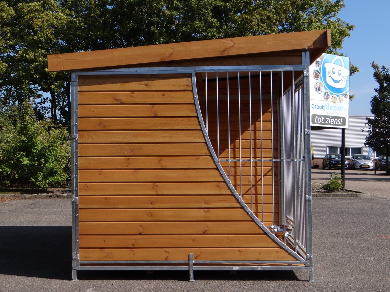 Chenil pour chien Heavy est un chenil très complêt! Le chenil a un toit, un abri à droite et même un plancher en bois. Le bois de beaucoup de chenils a un épaisseur de 17mm, mais le bois de ce chenil a même un épaisseur de 21 mm! Si vous ouvriez ou fermez les portes, vous comprenderez pourquoi le nom du chenil est 'Heavy'... Nous livrons ce chenil gratuite en toute la France ou Belgique.