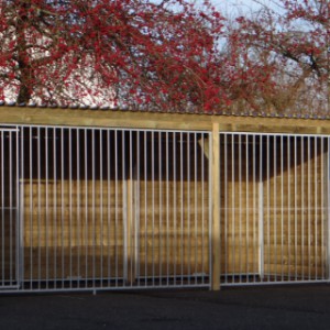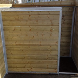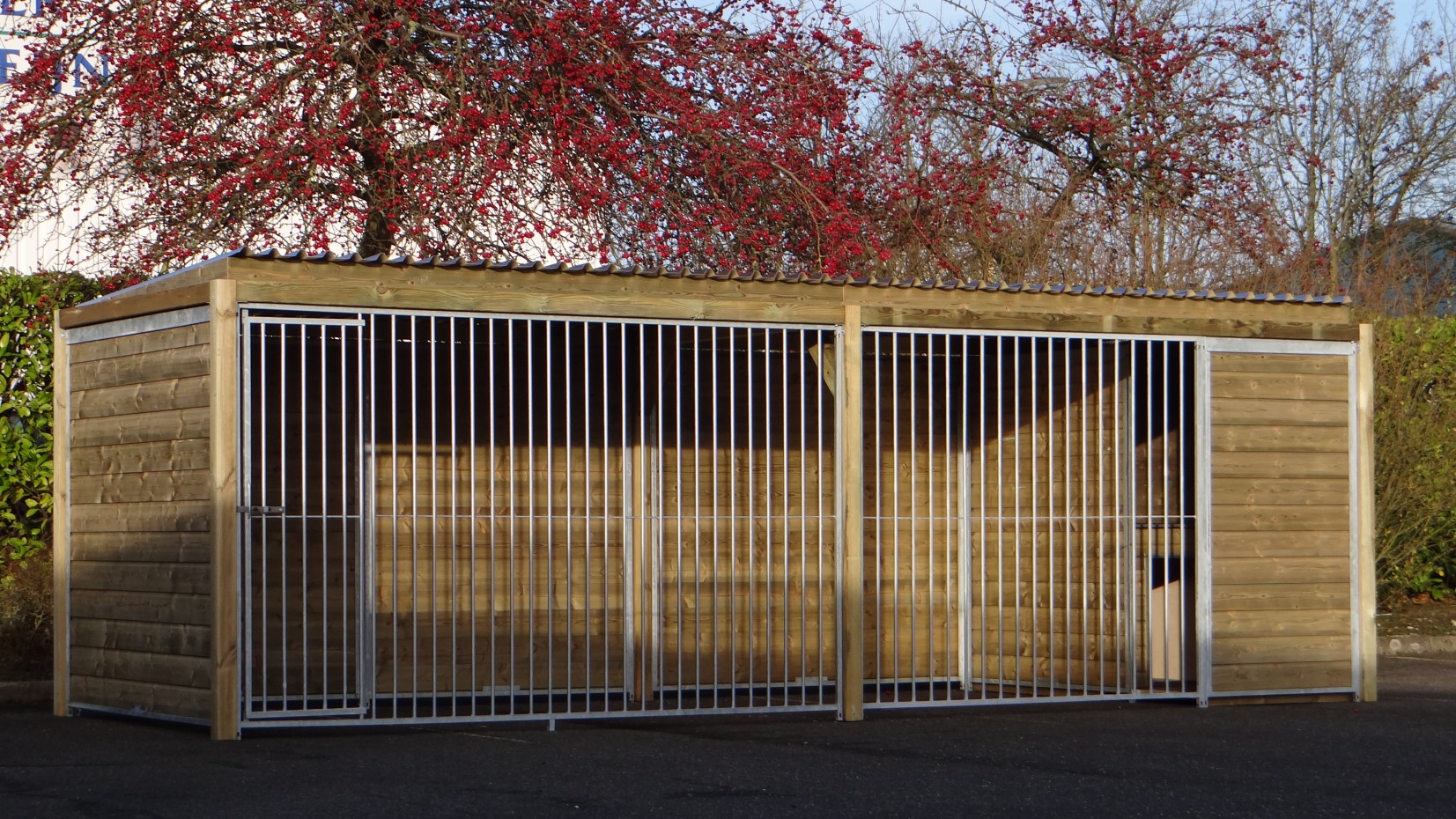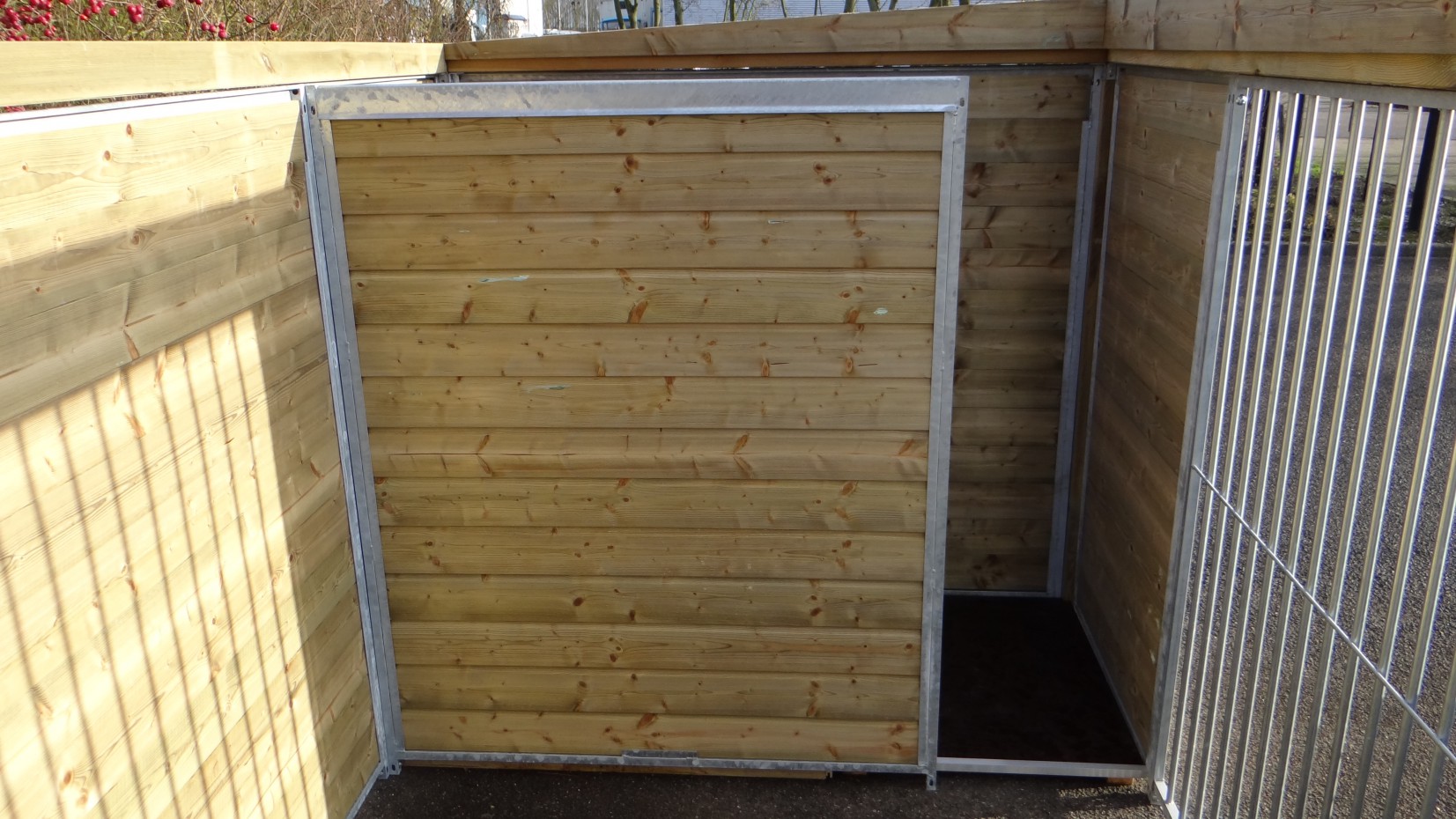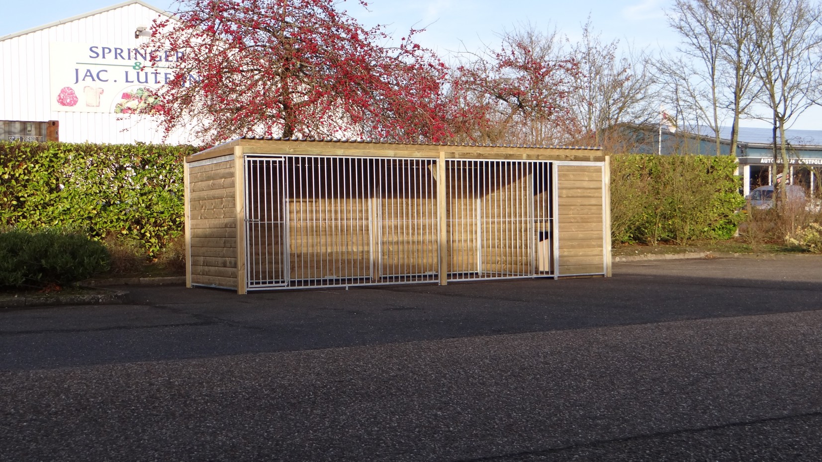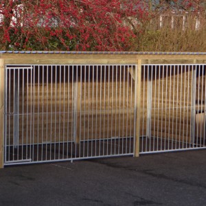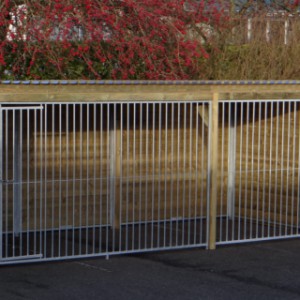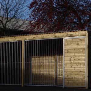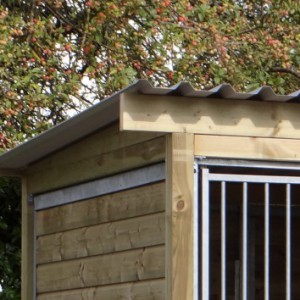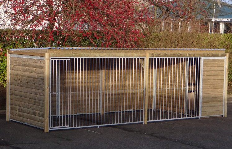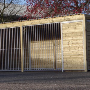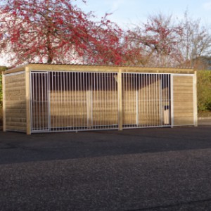 Grand chenil XXL de 6x2 m. avec niche isolée et avec toit. La cadre en bois est vraiment très belle. Le toit est équipé avec matériel réduction du bruit. Niche pour chien Easy protège votre chien contre de la pluie et la froid. Un très beau et grand chenil XXL!