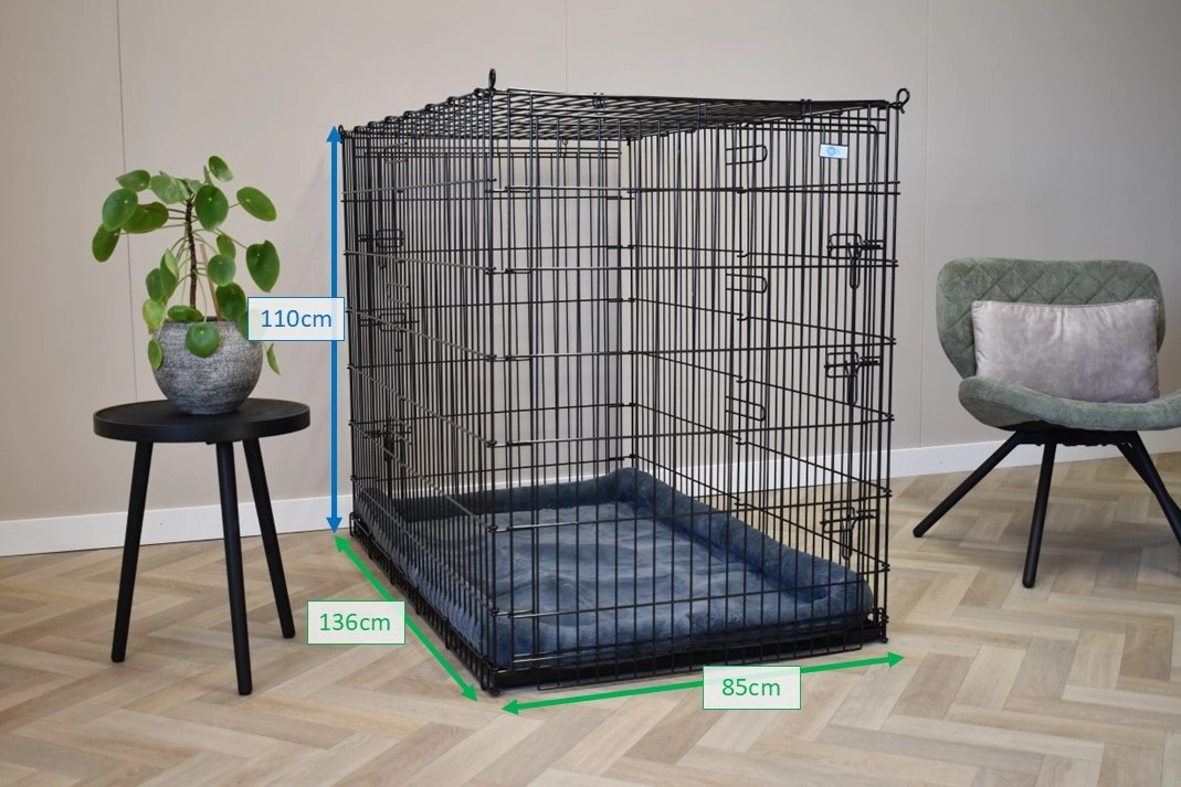 Cette caisse pour chien extra-large de pas moins de 136x85x110cm (L×l×H) est une caisse pour chien énorme. Même le plus grand des chiens peut entrer dans cette cage grillagée. Cette grande niche pour chien XXL est munie de 2 portes avec des fermetures solides, 3-doubles.