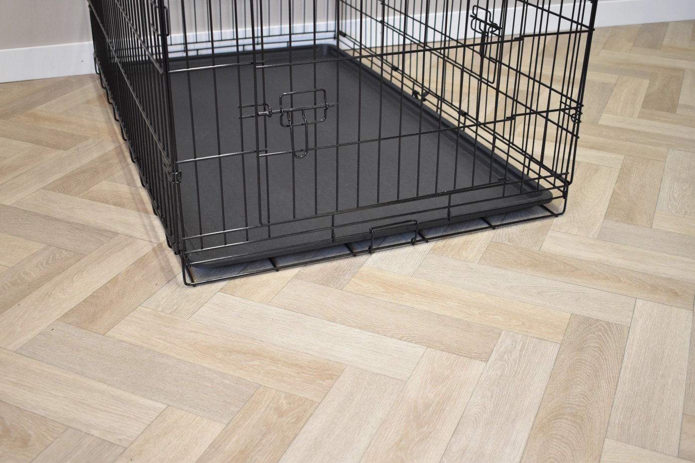 La cage pour chien Profit a les dimensions 107x70x78cm (LxlxH). Une cage pliable avec un bac en plastique. Le cage est facile à nettoyer. La cage noire a 2 portes avec double fermetures. Il s'agit de la plus grande cage du modèle Profit, adaptée à un chien de grande taille tel que : Akita Inu, Bearded Collie, Berger Belge, Border Collie, Boxer, Dalmatien, Golden Retriever, Berger Hollandais, Labrador Retriever, Malinois et Vizsla. La cage est disponible en 6 tailles: 50cm / 63cm / 78cm / 92cm / [107cm] / 122cm. Dans notre autre model Strong, nous avons une cage plus grande.
