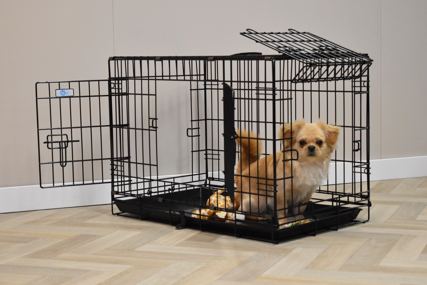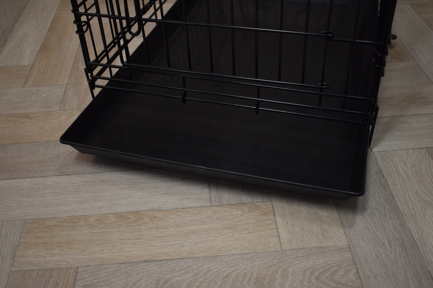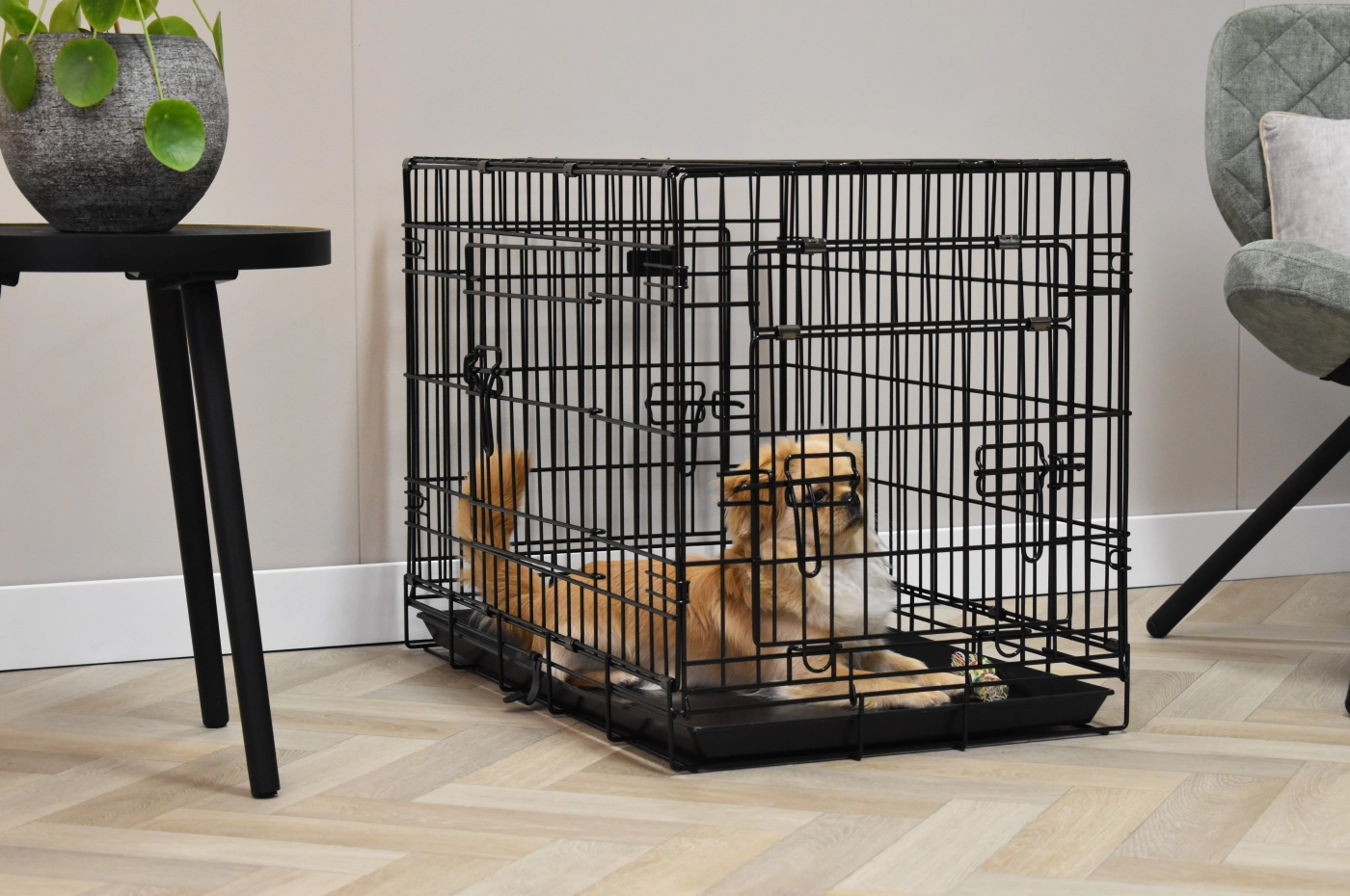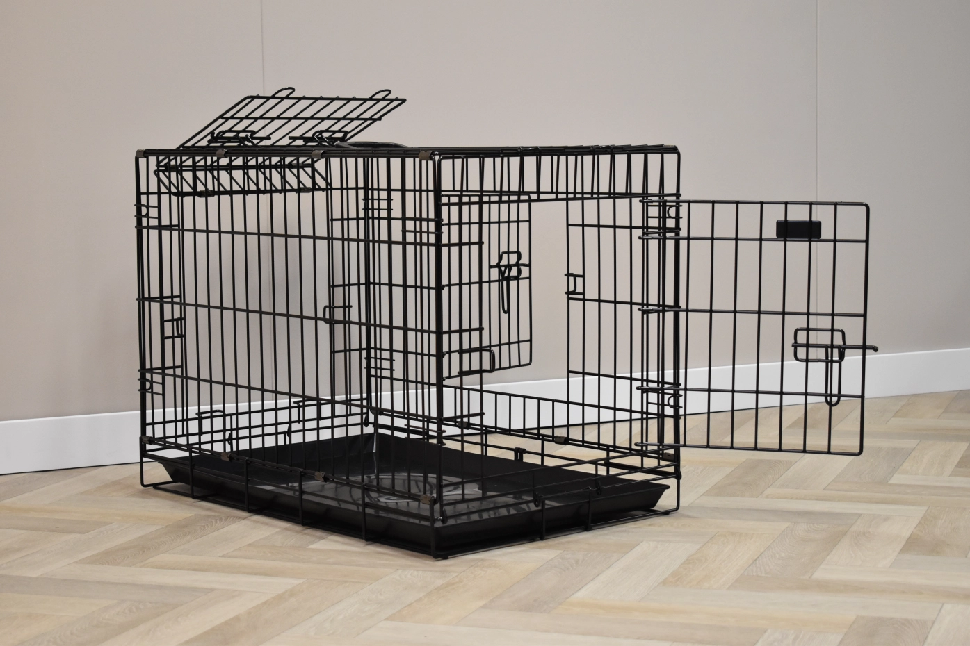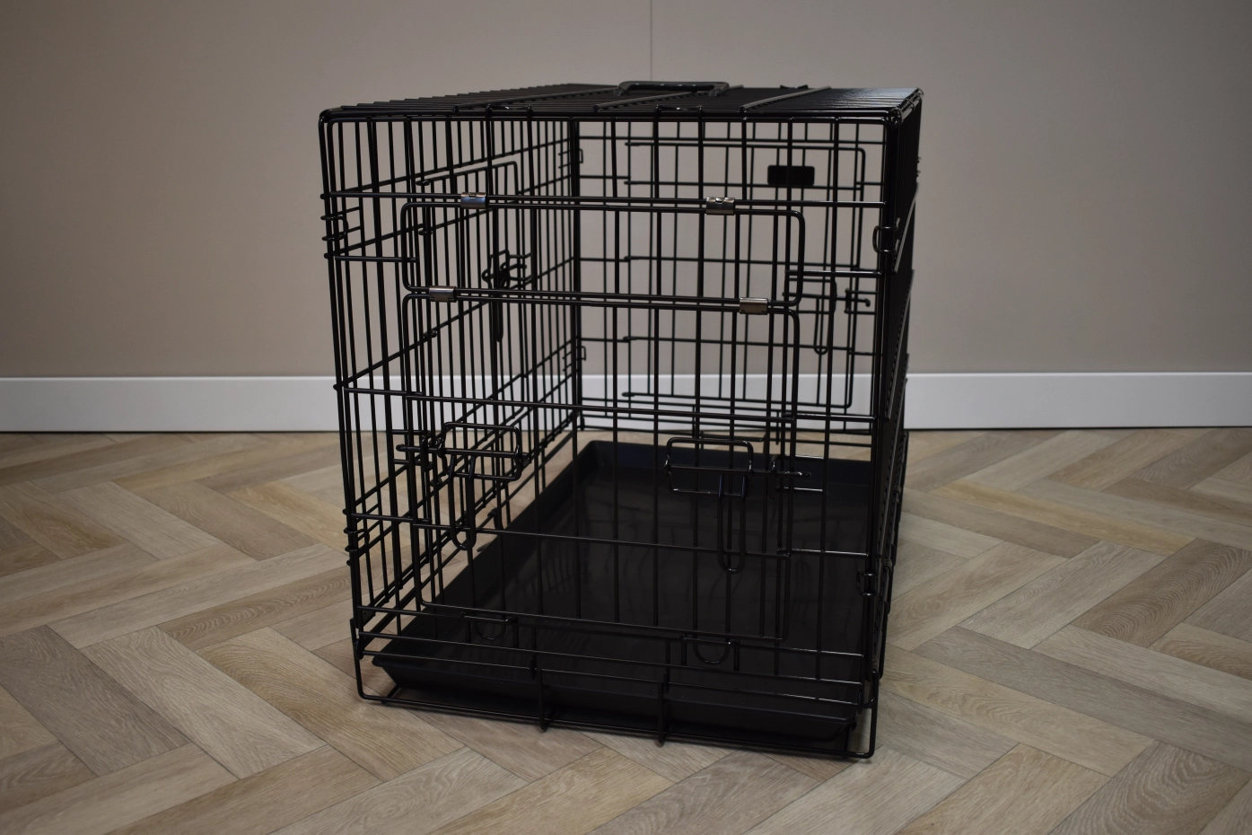 Banc pour chien robuste de 78x49cm. Notre chenil pour chiens à barreaux robustes et épais, revêtus de poudre noire, est doté de 3 portes robustes à fermeture coulissante/pliable. Cette niche pour chien pratique et pliable est également équipée de pieds antidérapants en caoutchouc. La niche pour chien dispose également d'un plateau en plastique amovible. Cette cage est destinée aux races de chiens un peu plus petites : Beagle, Schnauzer nain, Bouledogue français, Pomsky, Springer espagnol gallois et Whippet.