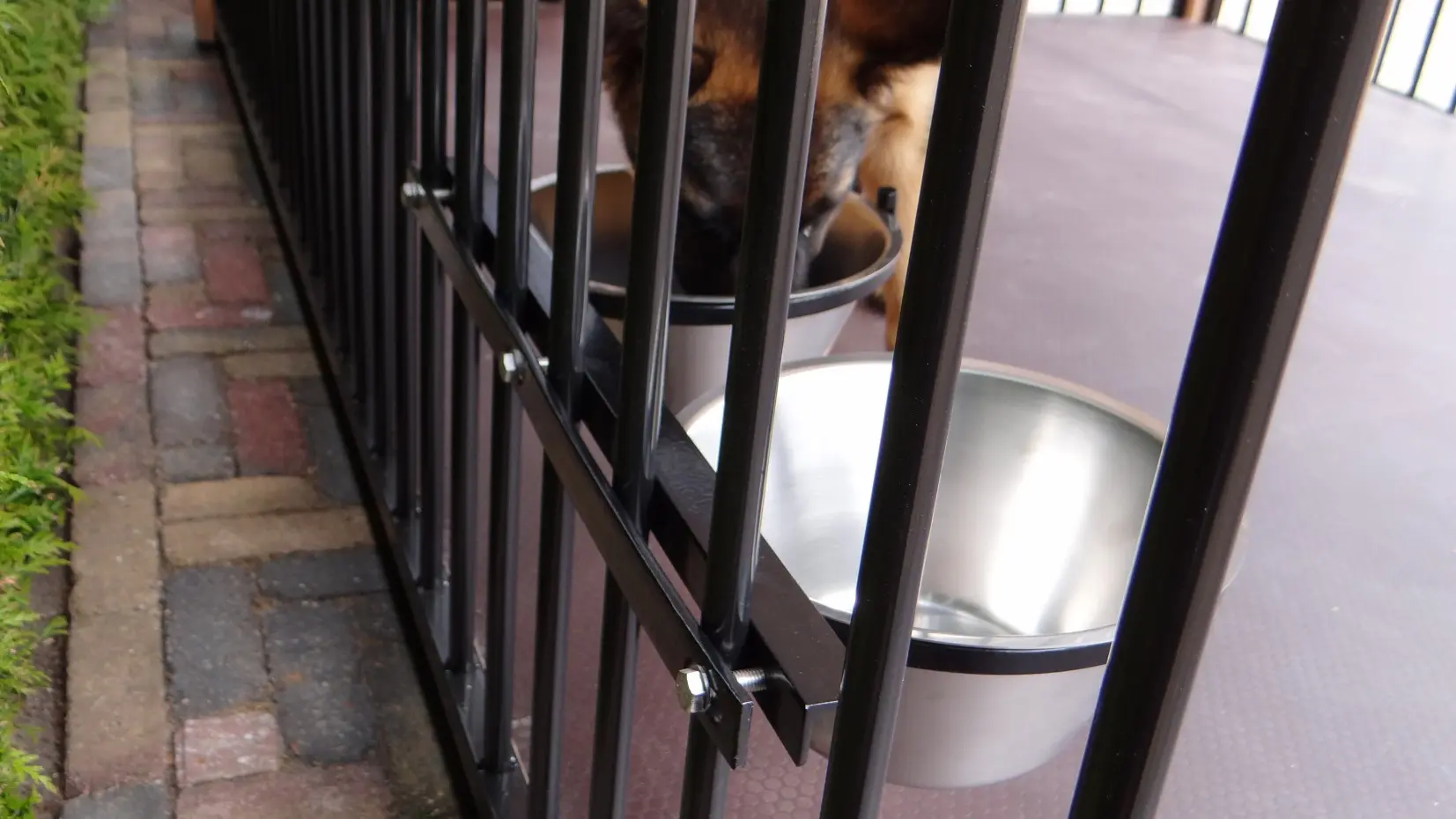 Bol pour boire et manger (enduit noir) à accrocher au chenil. Cette gamelle en acier inoxydable comporte 2 bols d'une capacité de 4 litres et une fixation facile pour que votre chien ne puisse pas pousser la gamelle.
