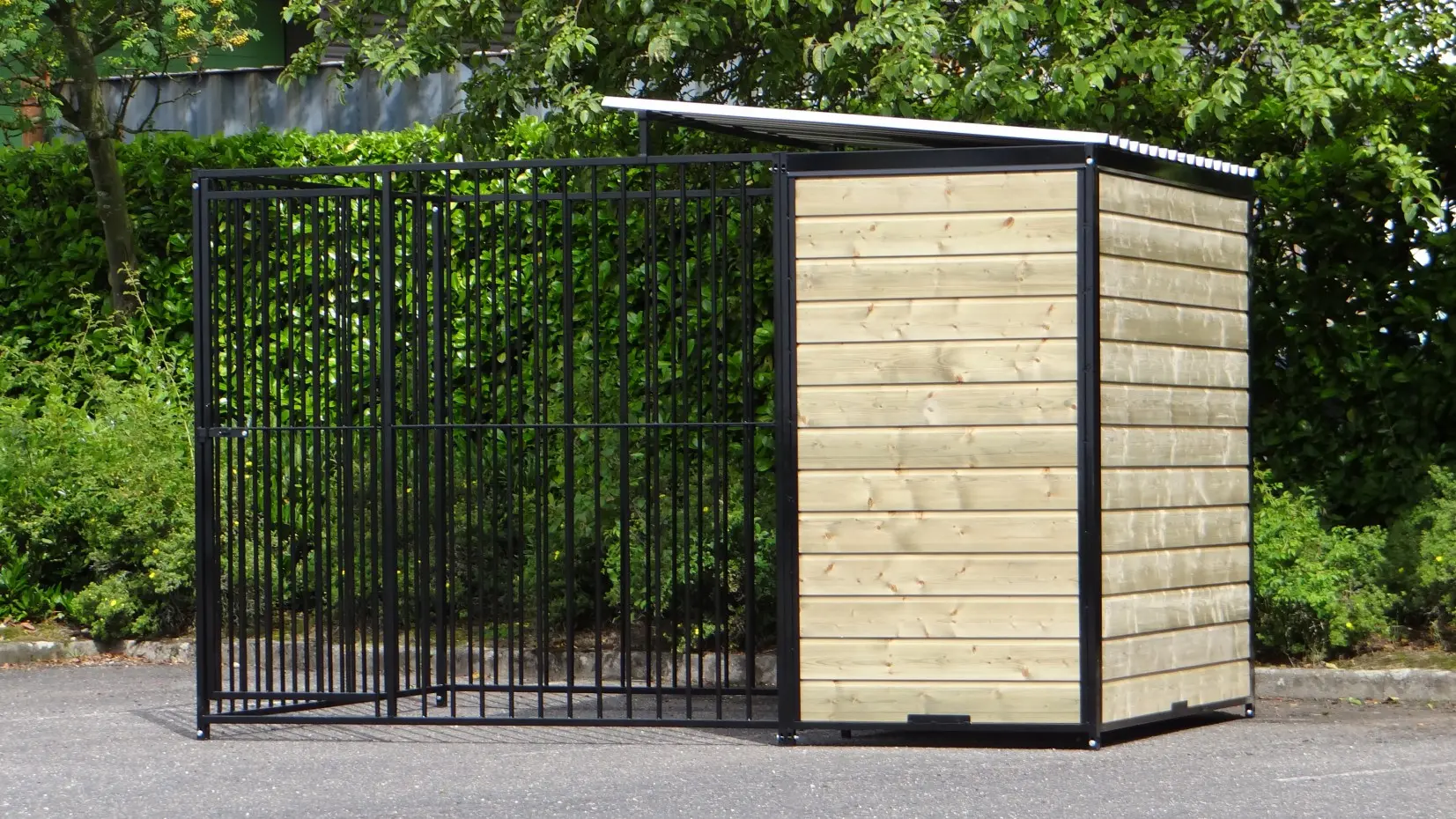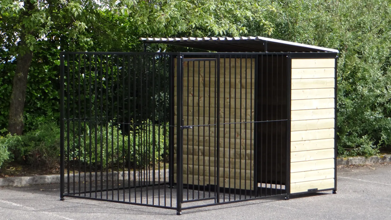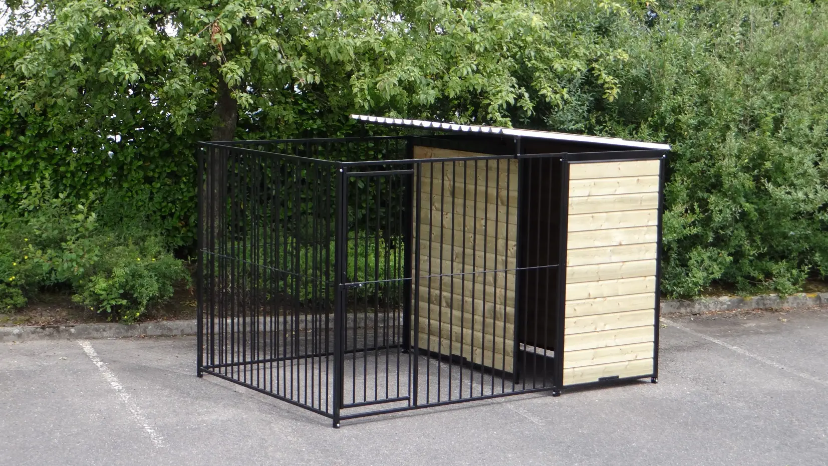 Ce chenil fort et noir enduit, est une cage parfaite pour votre chien. Le chenil est équipé d'un demi toit et de murs en bois. Le chenil est 3 x 2 mètre et il est équipé d'une pare-brise pour un bon abri pour votre chien.