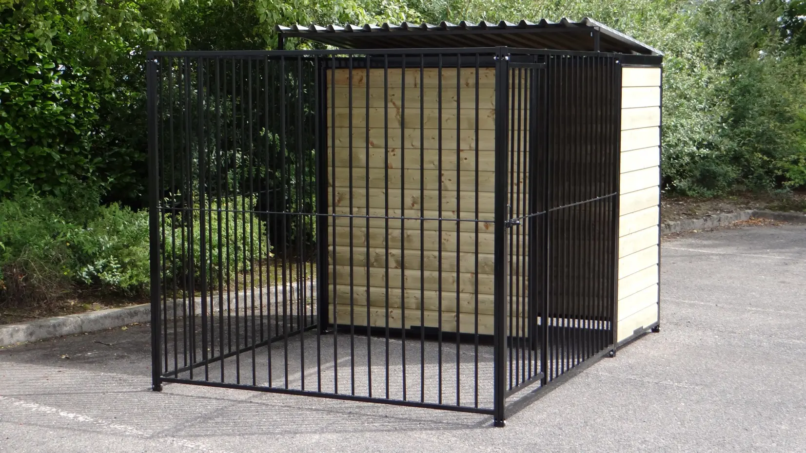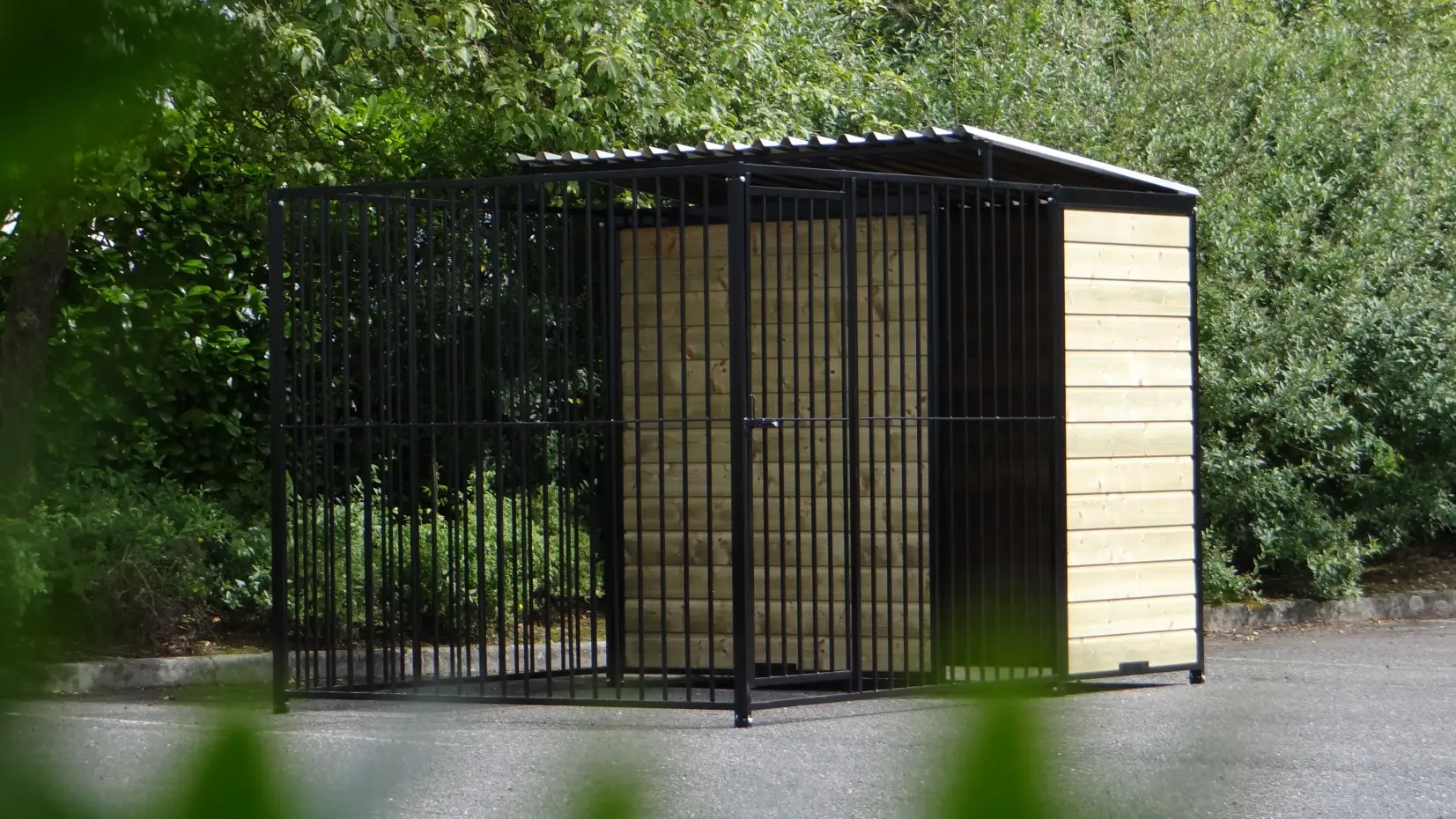- La porte du chenil est standard sur le côté gauche, s'ouvre vers l'intérieur et peut être cadenassée