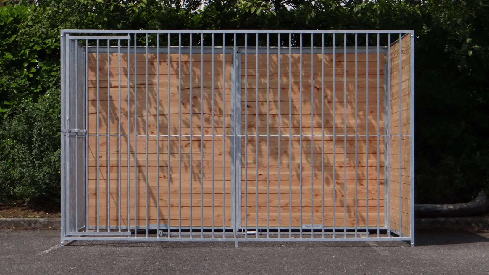 Le chenil de 3x2m est équipé de 2 murs fermés en bois et de 2 panneaux de treillis. Un panneau avec ouverture avec porte pour une accessibilité optimale. Puis, il y a crée un angle pour votre chien oú il peut s'allonger, ou comme endroit pour la niche.