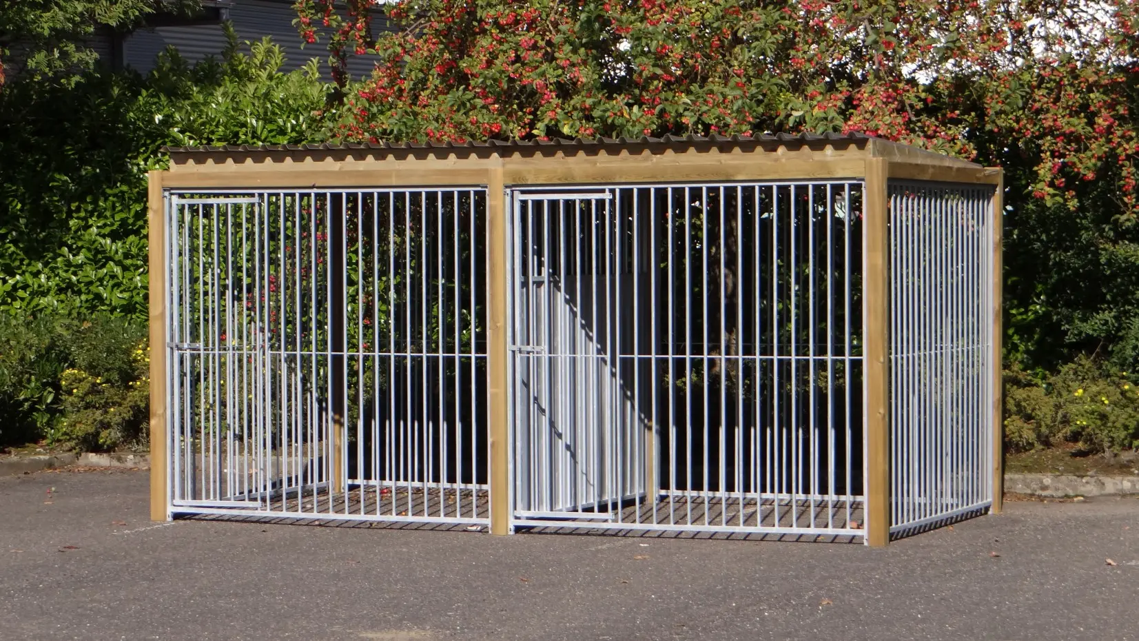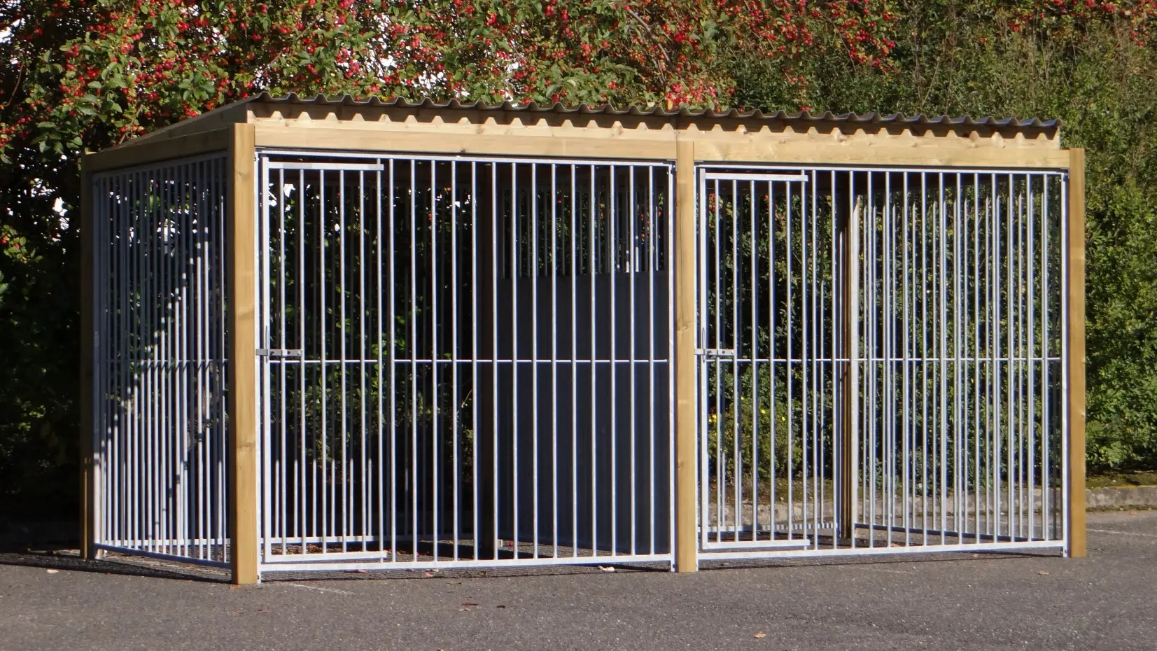 Le chenil double Flinq avec cadre en bois est très solide et pratique. Le cadre en bois autour des panneaux offre une apparence robuste et élégante. Le chenil mesure 427 x 218 cm, chaque enclos ayant une surface de 4 m². Il est donc idéal pour garder 2 chiens séparément. Il est également possible d’équiper chaque enclos d’une niche. La structure métallique est bien galvanisée contre la rouille et le toit est en aluminium avec un profil insonorisant. Les poutres imprégnées ont une longue durée de vie et ne nécessitent aucun entretien. Une notice de montage claire est fournie.