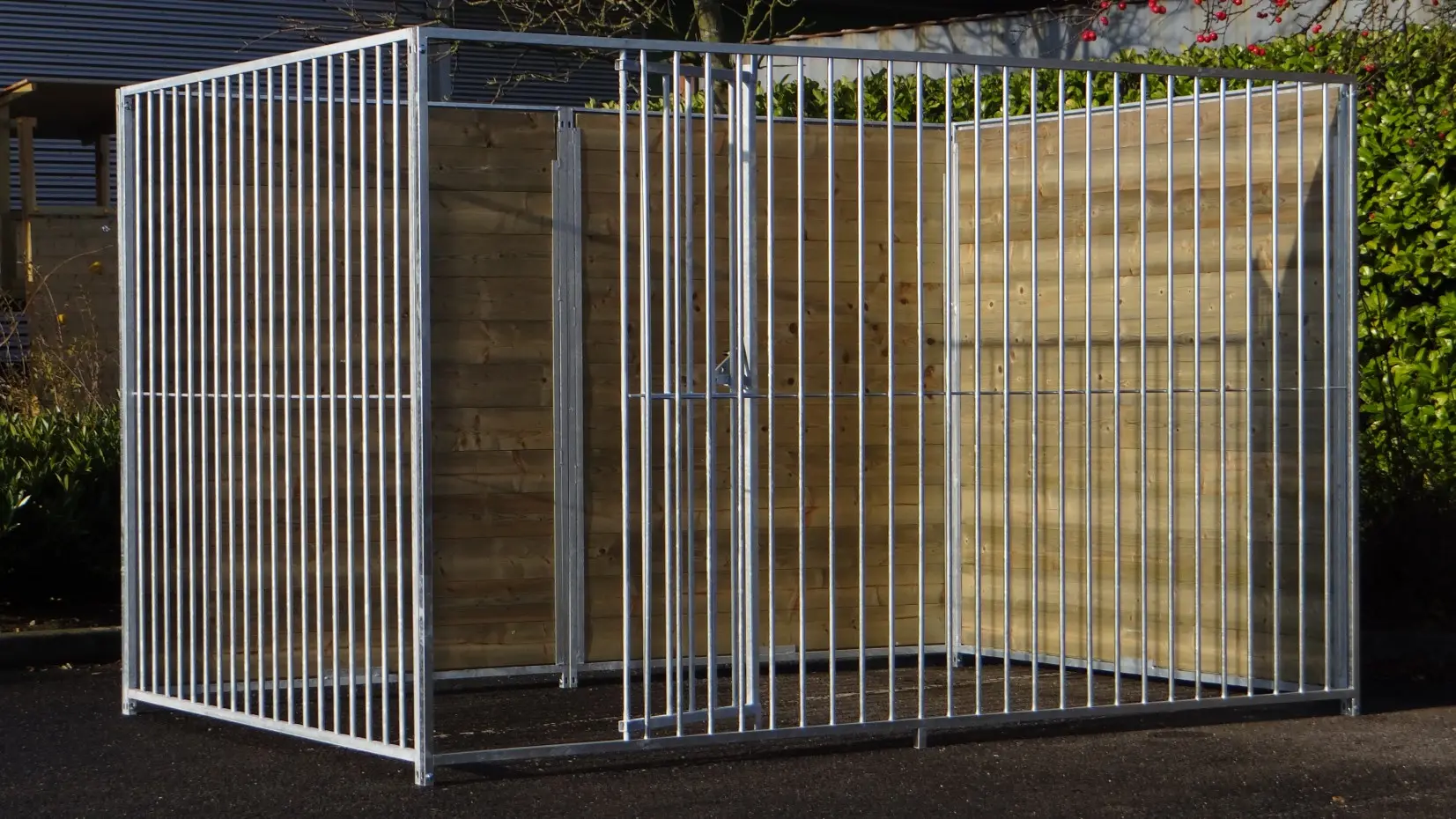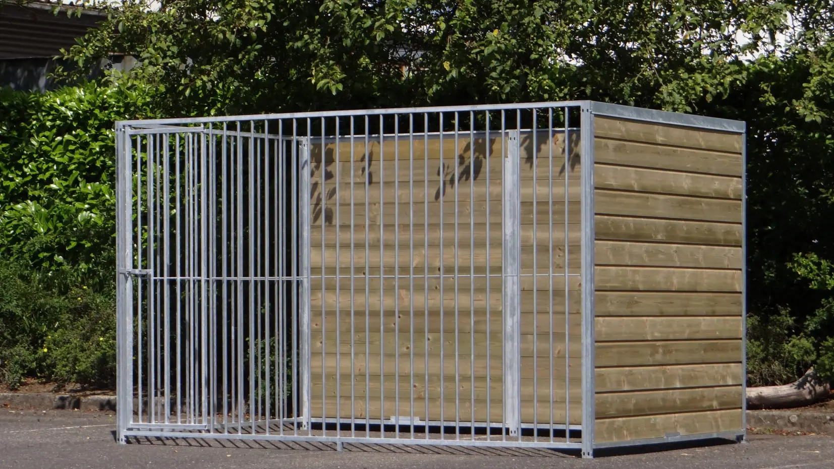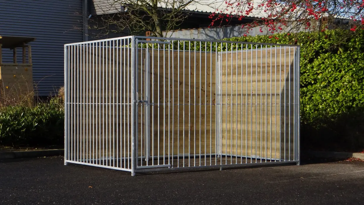 - La porte du chenil est standard sur le côté gauche, s'ouvre vers l'intérieur et peut être cadenassée