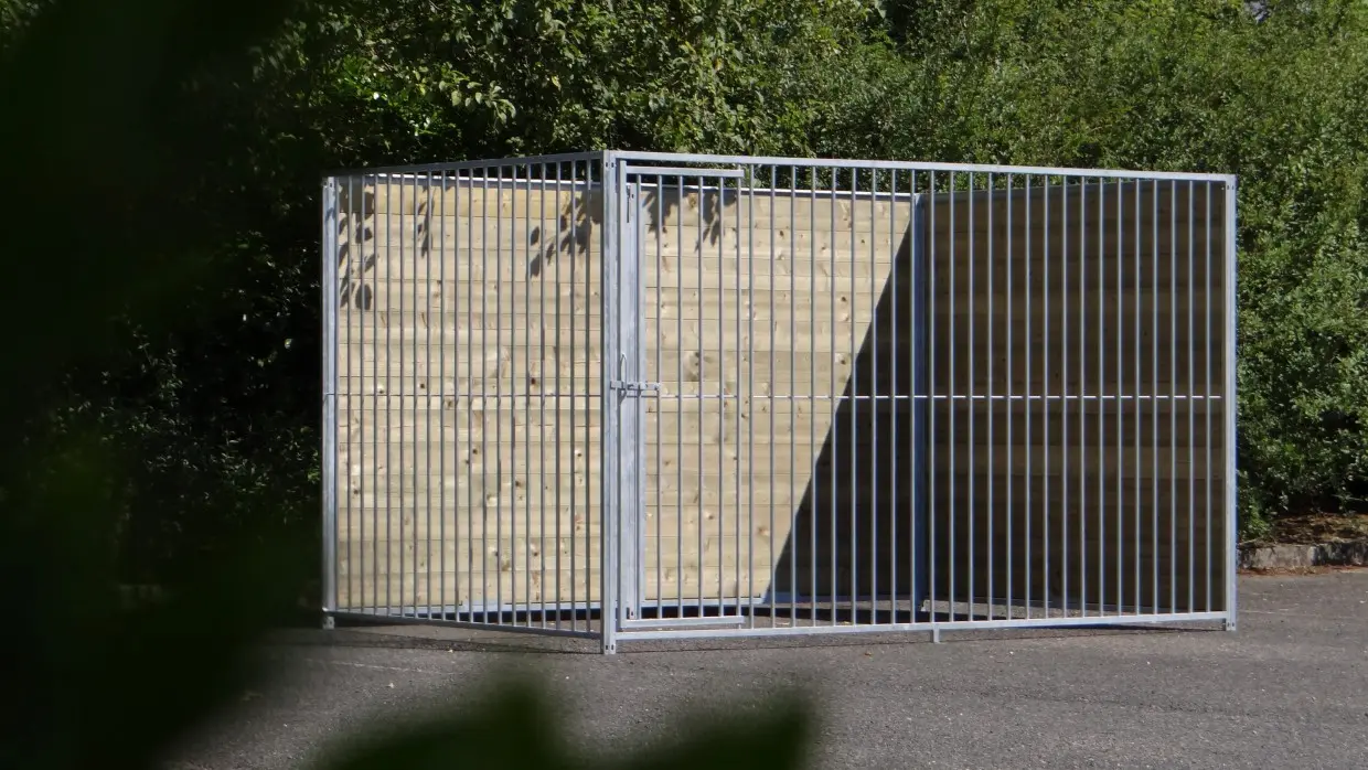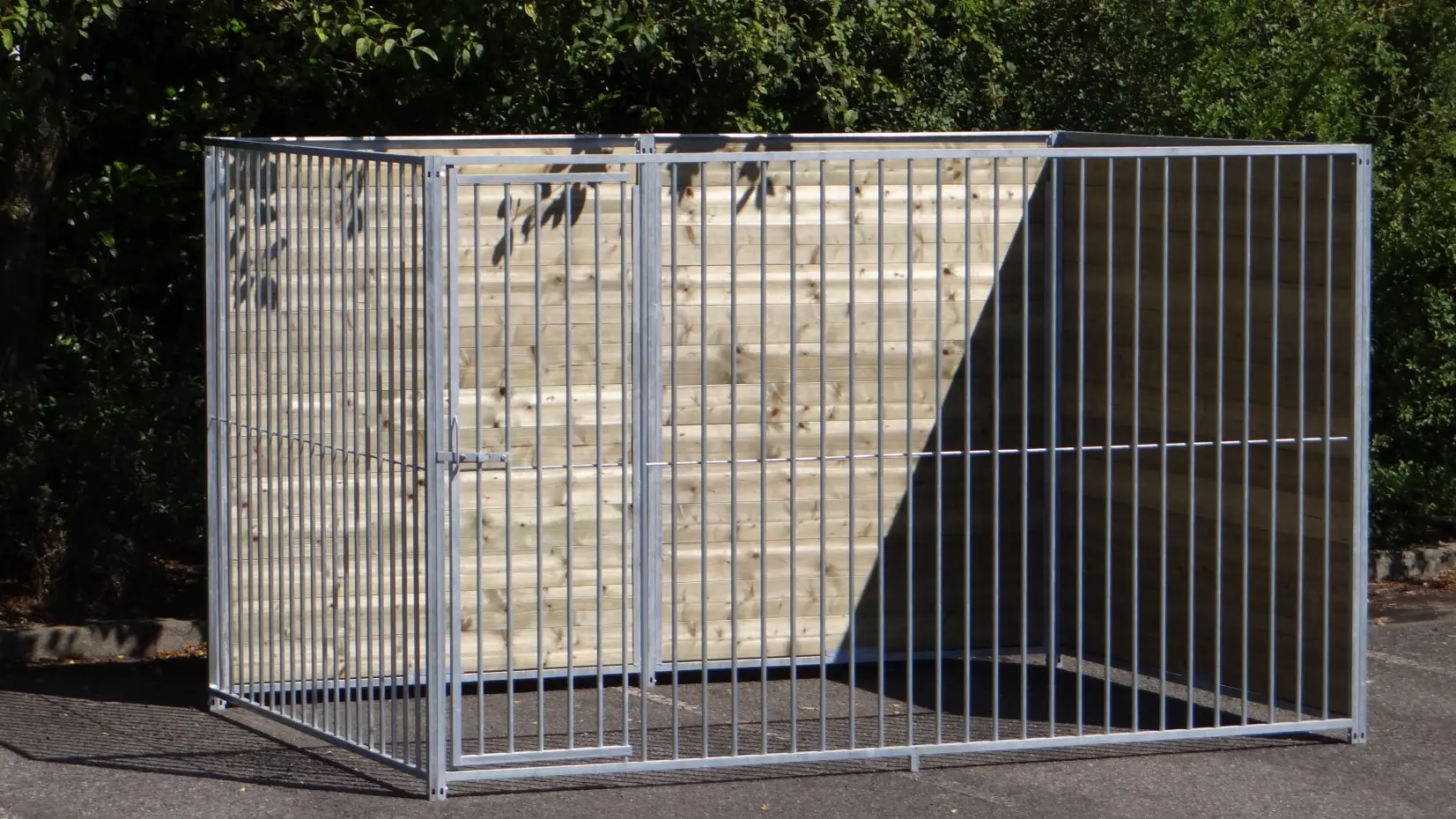 Le chenil de 2x3 m est équipé de 2 murs fermés en bois et de 2 panneaux de treillis. Un panneau avec ouverture avec porte pour une accessibilité optimale. Puis, il y a crée un angle pour votre chien oú il peut s'allonger, ou comme endroit pour la niche.