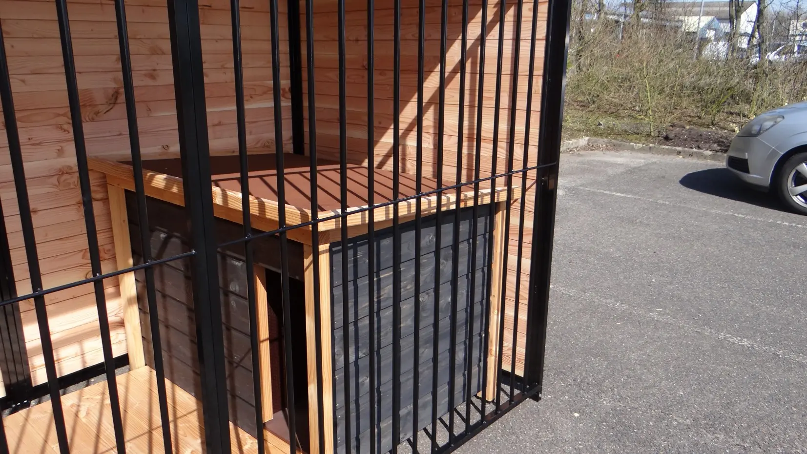 - La porte du chenil est standard sur le côté gauche, s'ouvre vers l'intérieur et peut être cadenassée