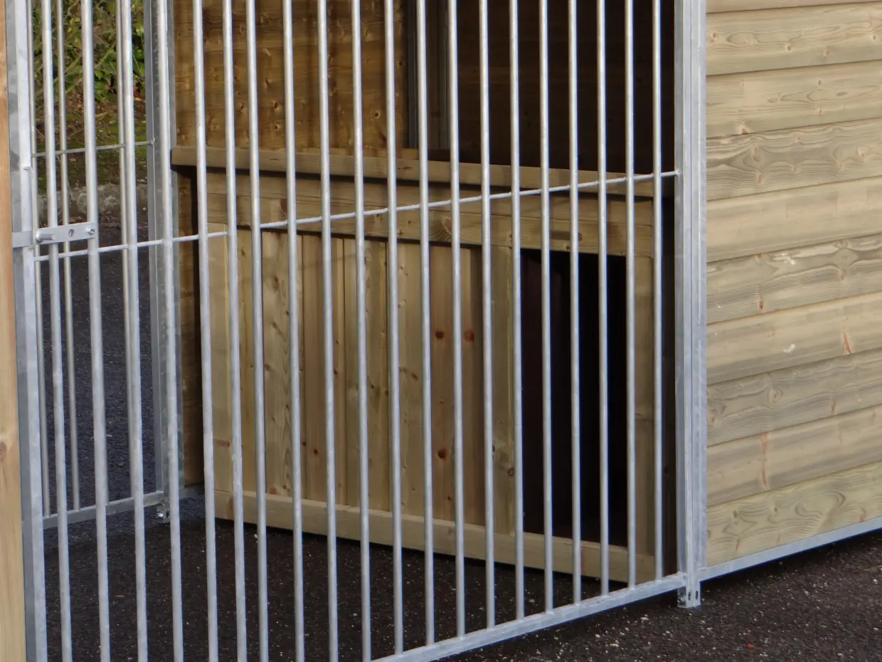 - La porte du chenil est standard sur le côté gauche, s'ouvre vers l'intérieur et peut être cadenassée