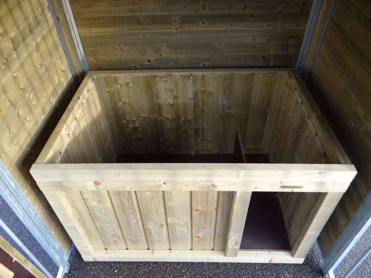 À l’intérieur du chenil se trouve une niche Block Large, offrant au chien un espace de repos bien abrité. La niche de nuit est dotée d’un toit amovible, facilitant le nettoyage.