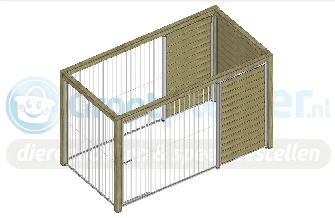 Ce chenil galvanisé robuste constitue un excellent espace extérieur pour votre chien. Le chenil est équipé d’un toit et dispose de trois parois en bois pleines. Les dimensions extérieures au sol sont de 318 x 168 cm.
