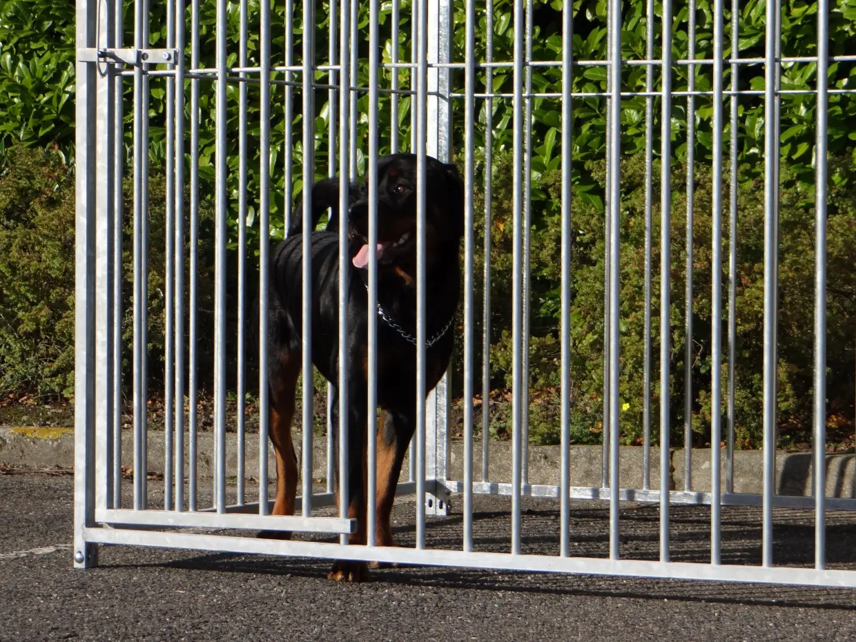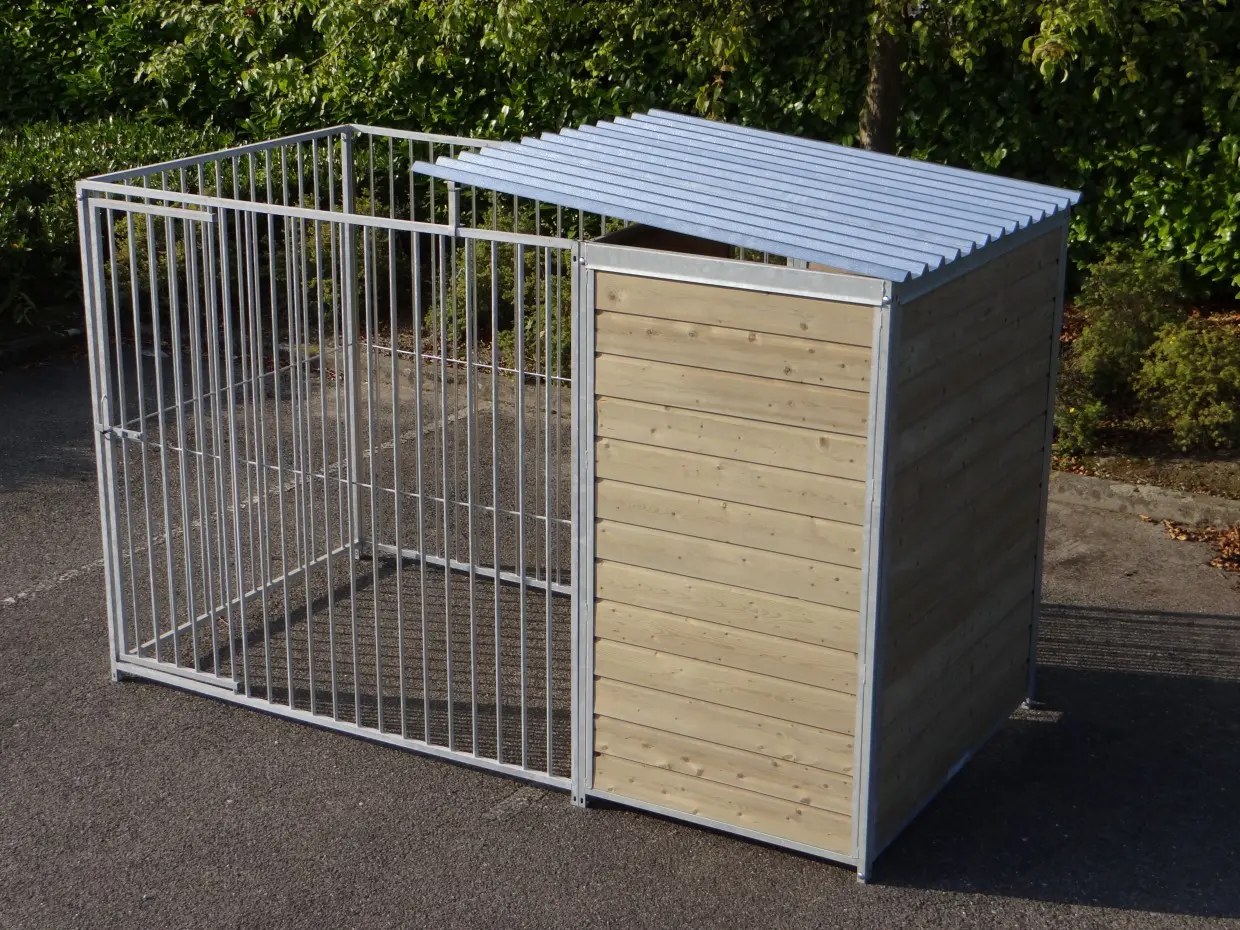 Un chenil très fort pour votre chien, avec semi-toit. Les dimensions du chenil sont 3 x 1,5 m.
