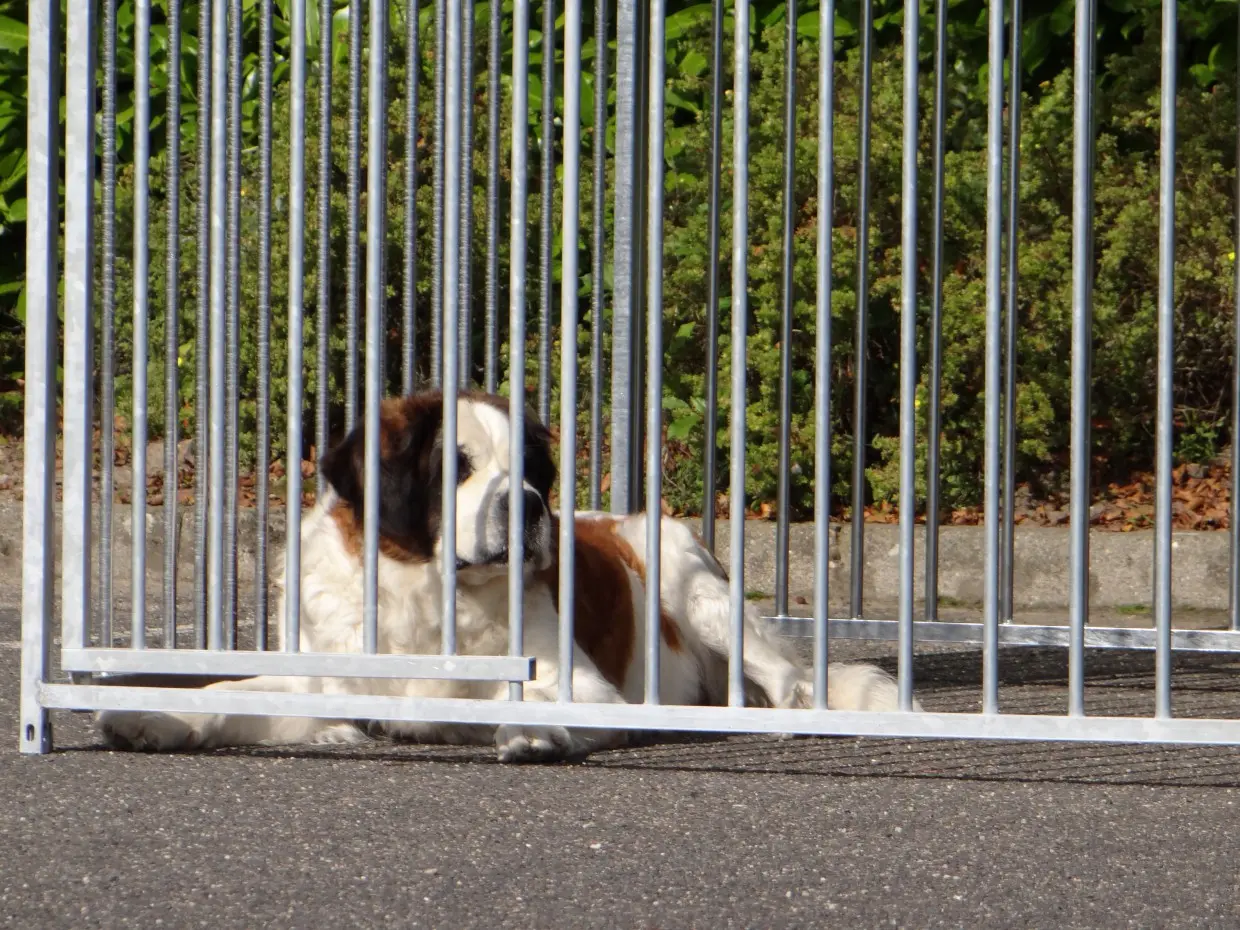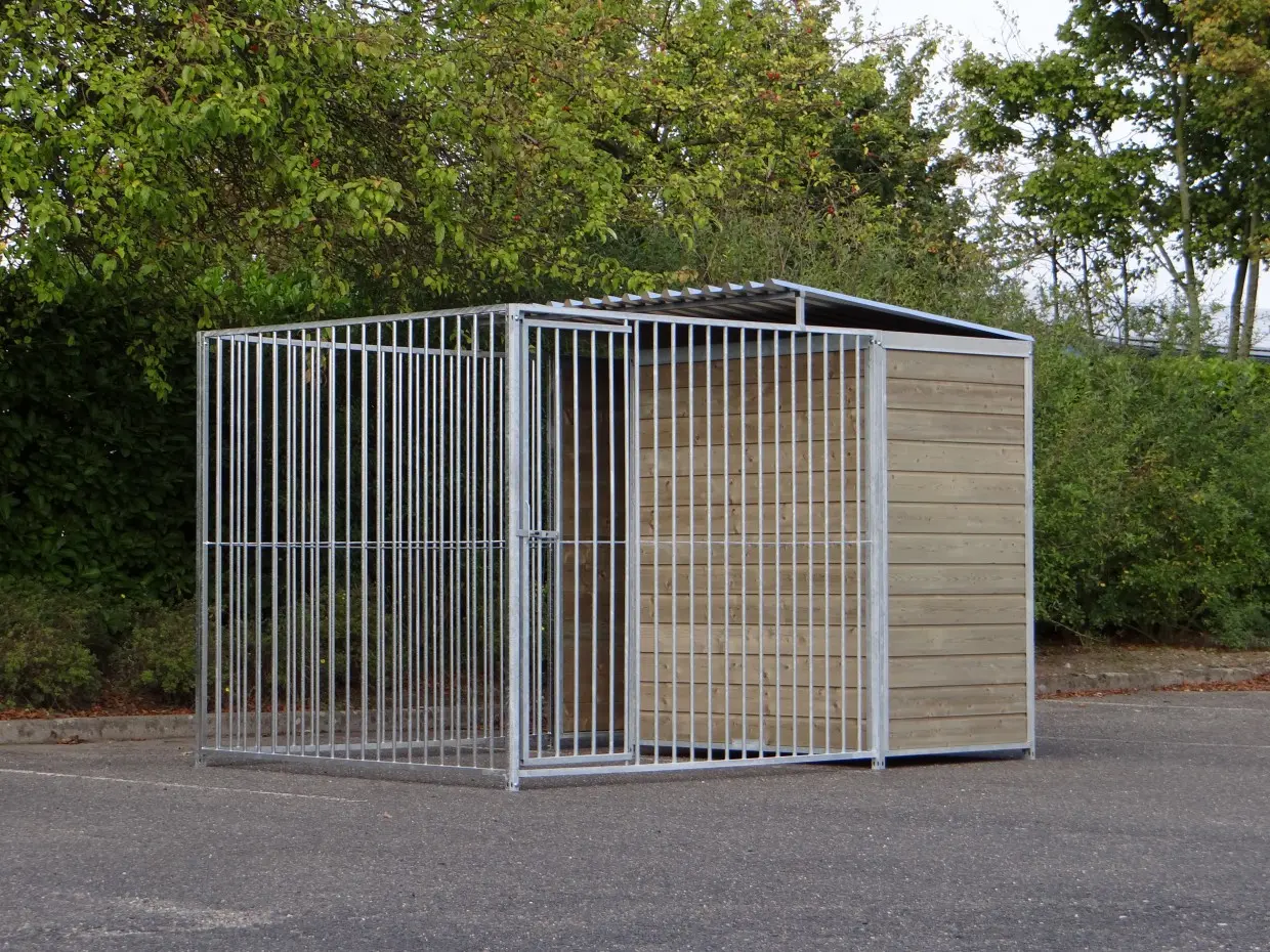 - La porte du chenil est standard sur le côté gauche, s'ouvre vers l'intérieur et peut être cadenassée