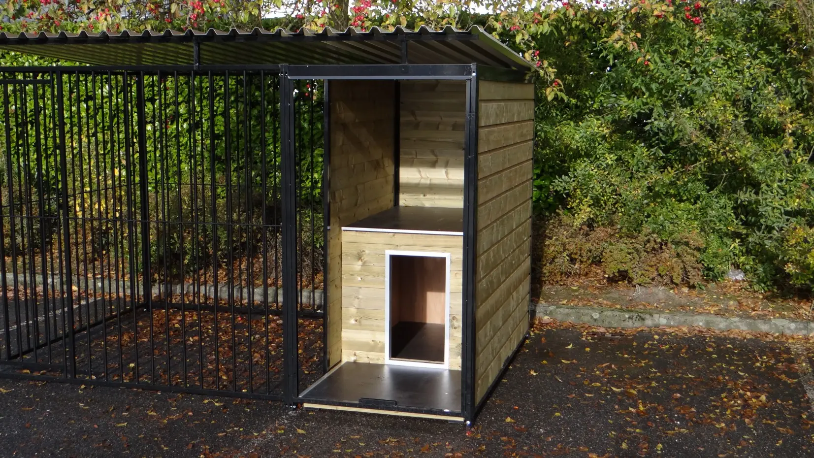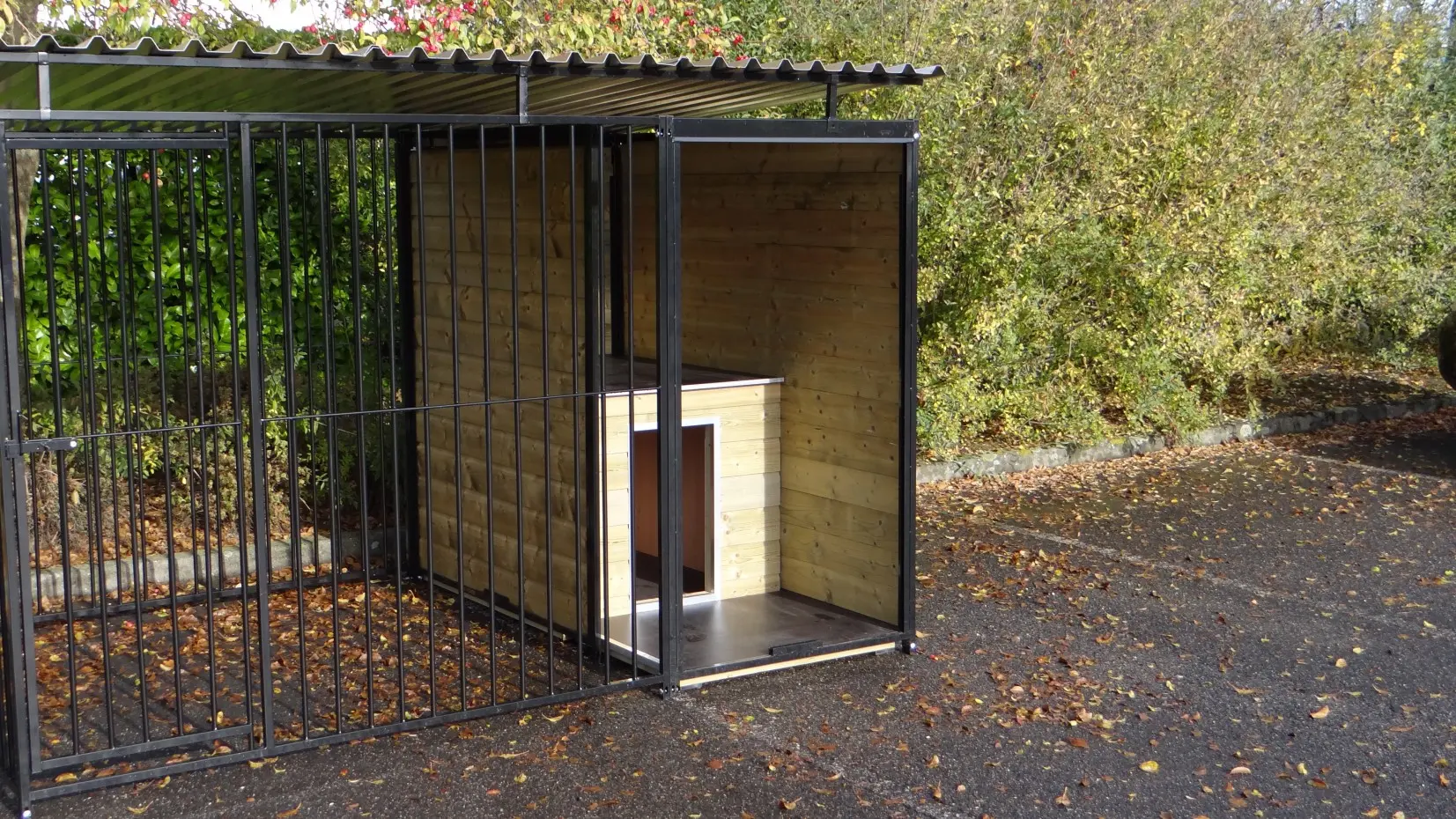 - La porte du chenil est standard sur le côté gauche, s'ouvre vers l'intérieur et peut être cadenassée