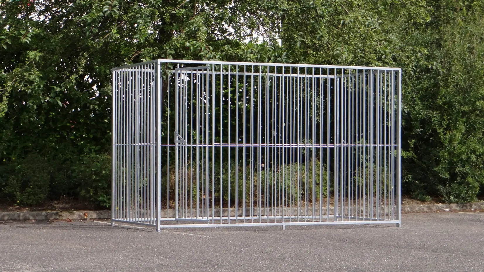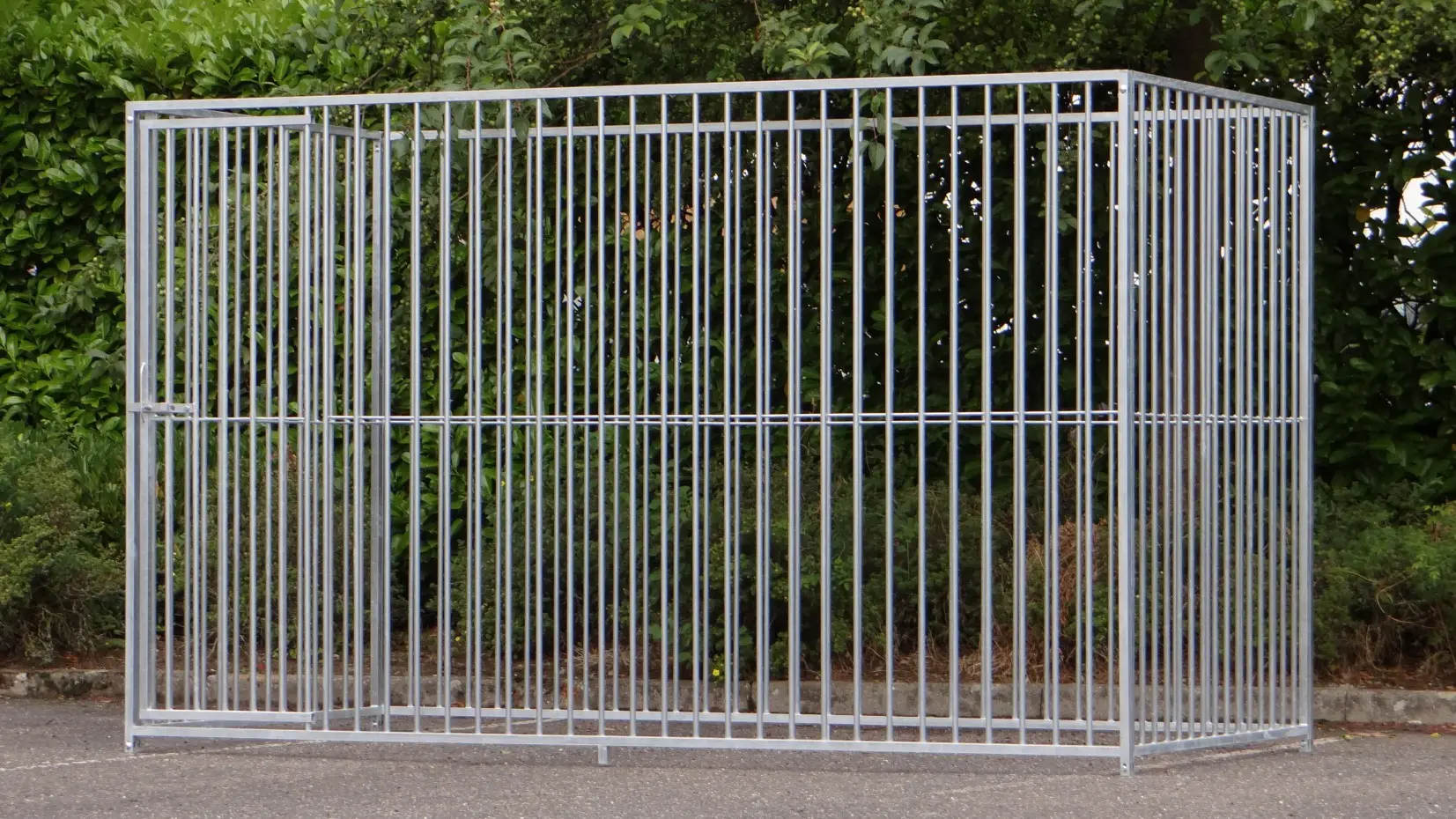 - La porte du chenil est standard sur le côté gauche, s'ouvre vers l'intérieur et peut être cadenassée