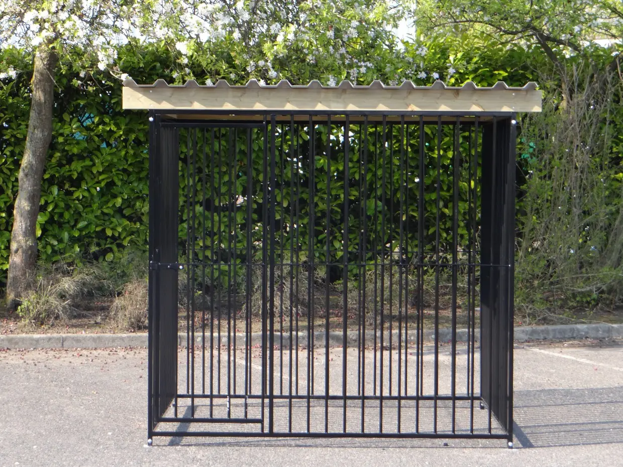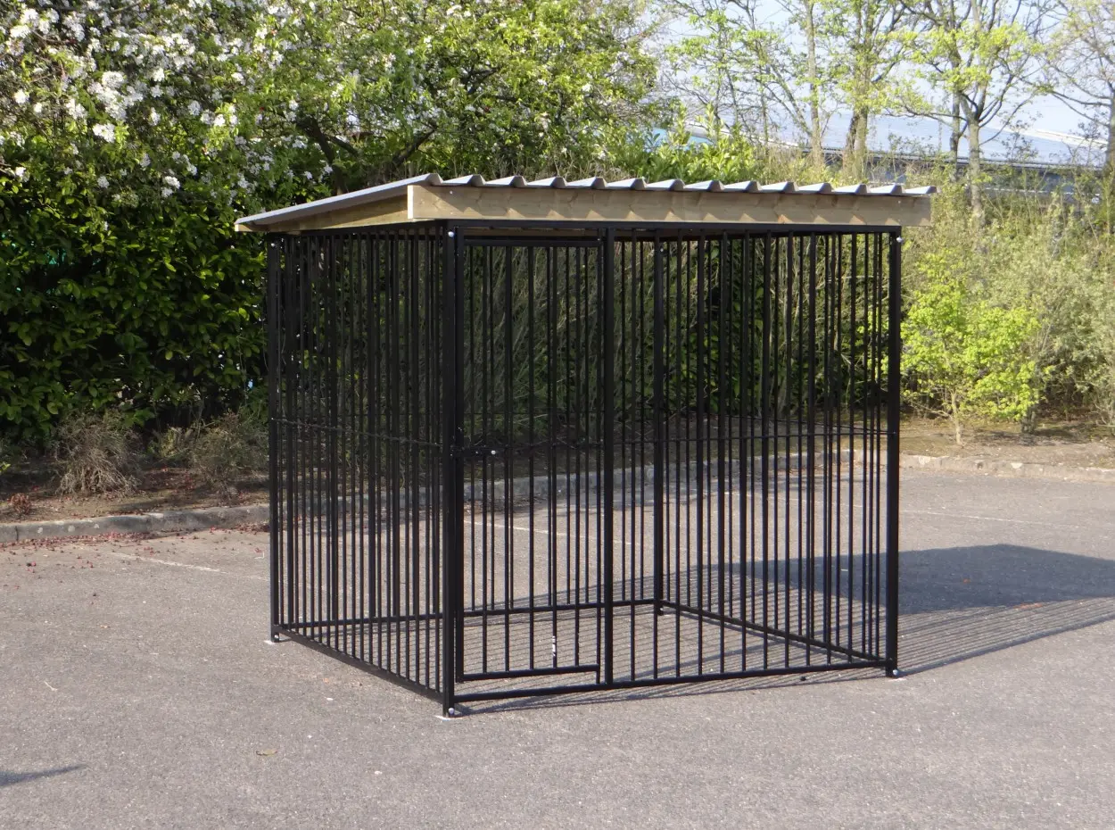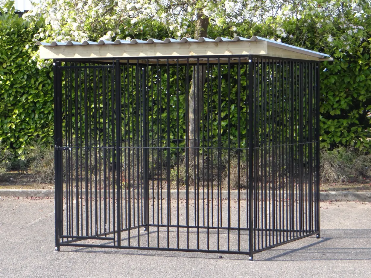 - La porte du chenil est standard sur le côté gauche, s'ouvre vers l'intérieur et peut être cadenassée