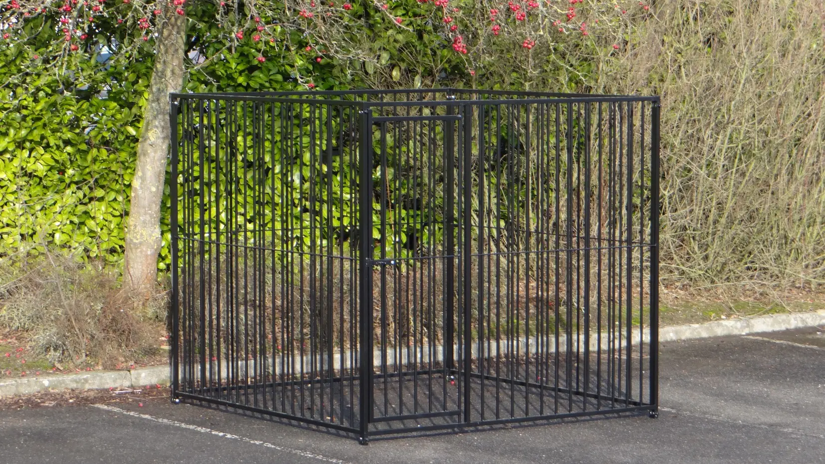 - La porte du chenil est standard sur le côté gauche, s'ouvre vers l'intérieur et peut être cadenassée