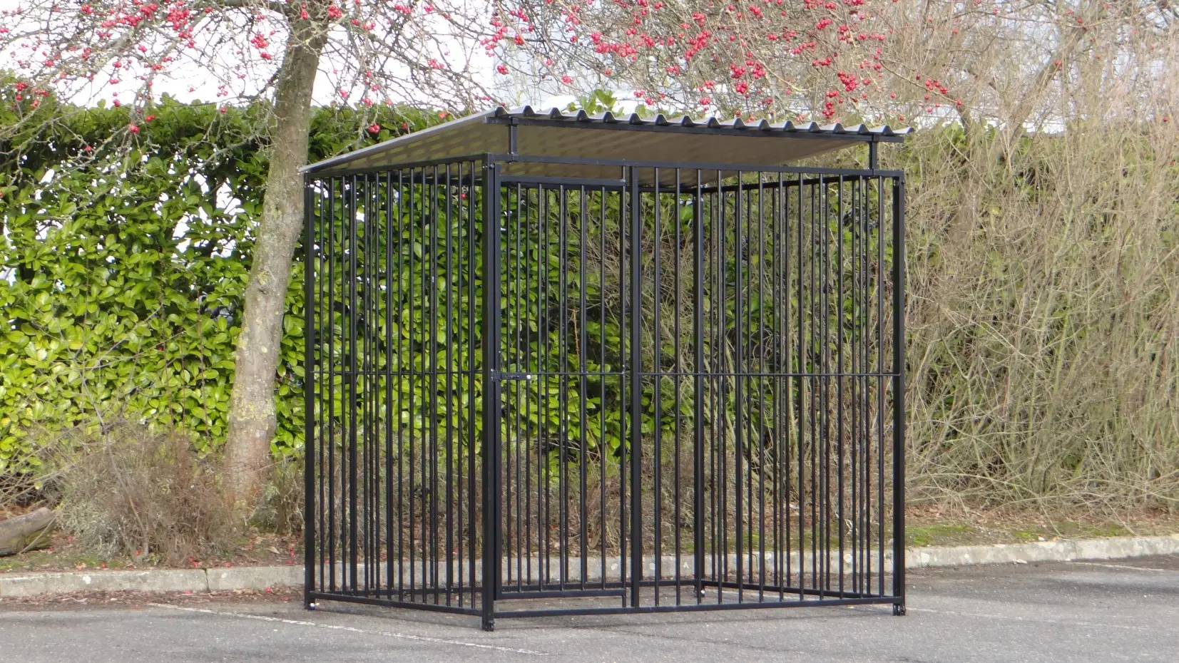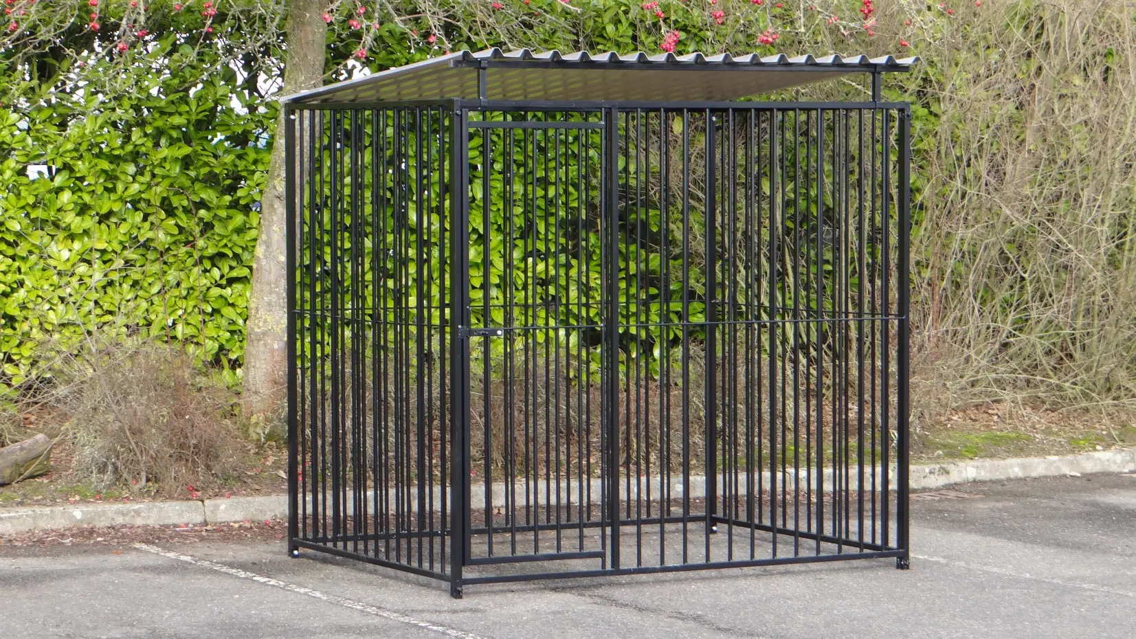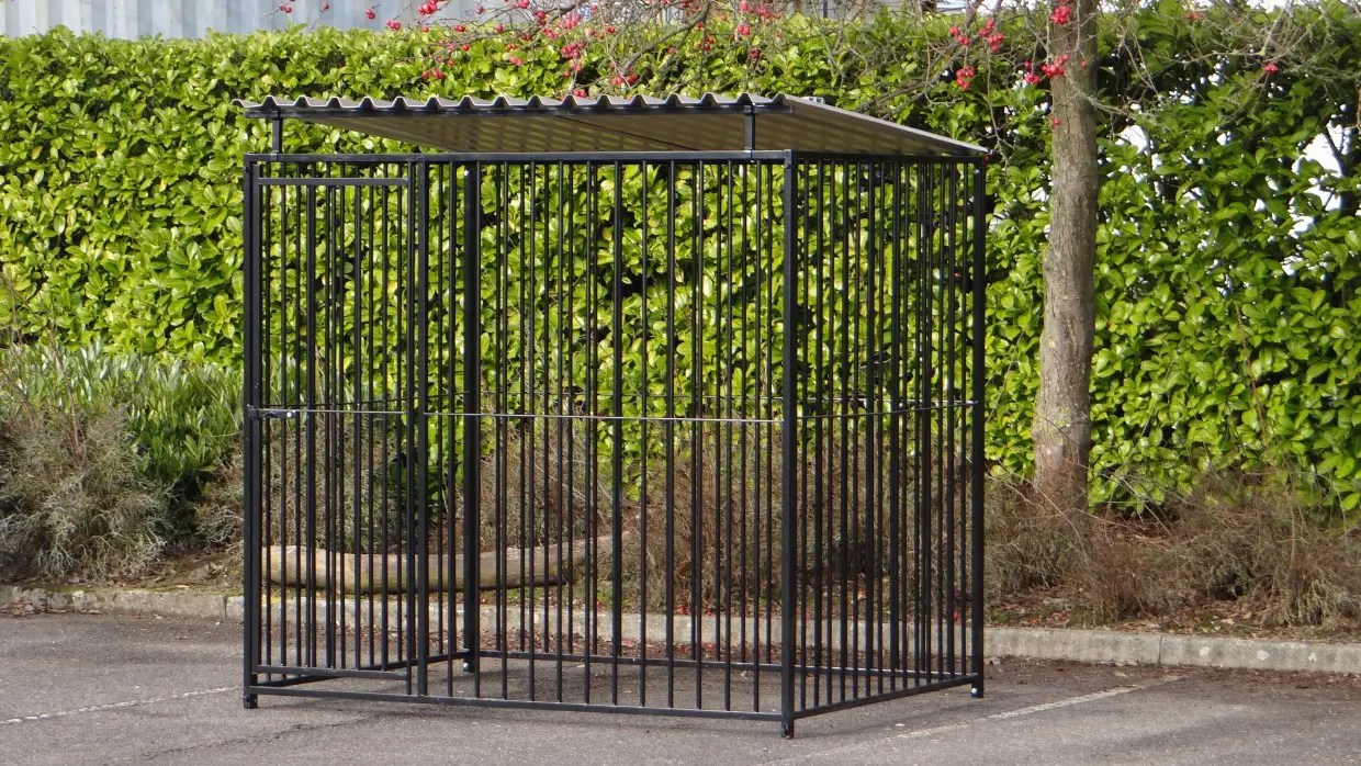 Chenil noir Flinq pour chien de 2m x 1,5m est un chenil très beau. Ce chenil a une ouverture pour une accessibilité optimale et un toit pour protéger votre chien contre de la pluie. Le chenil est disponible immédiatement!