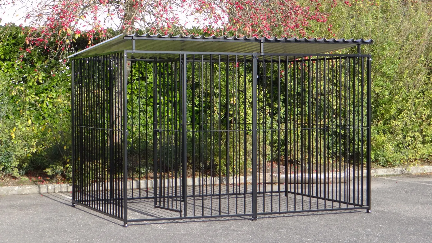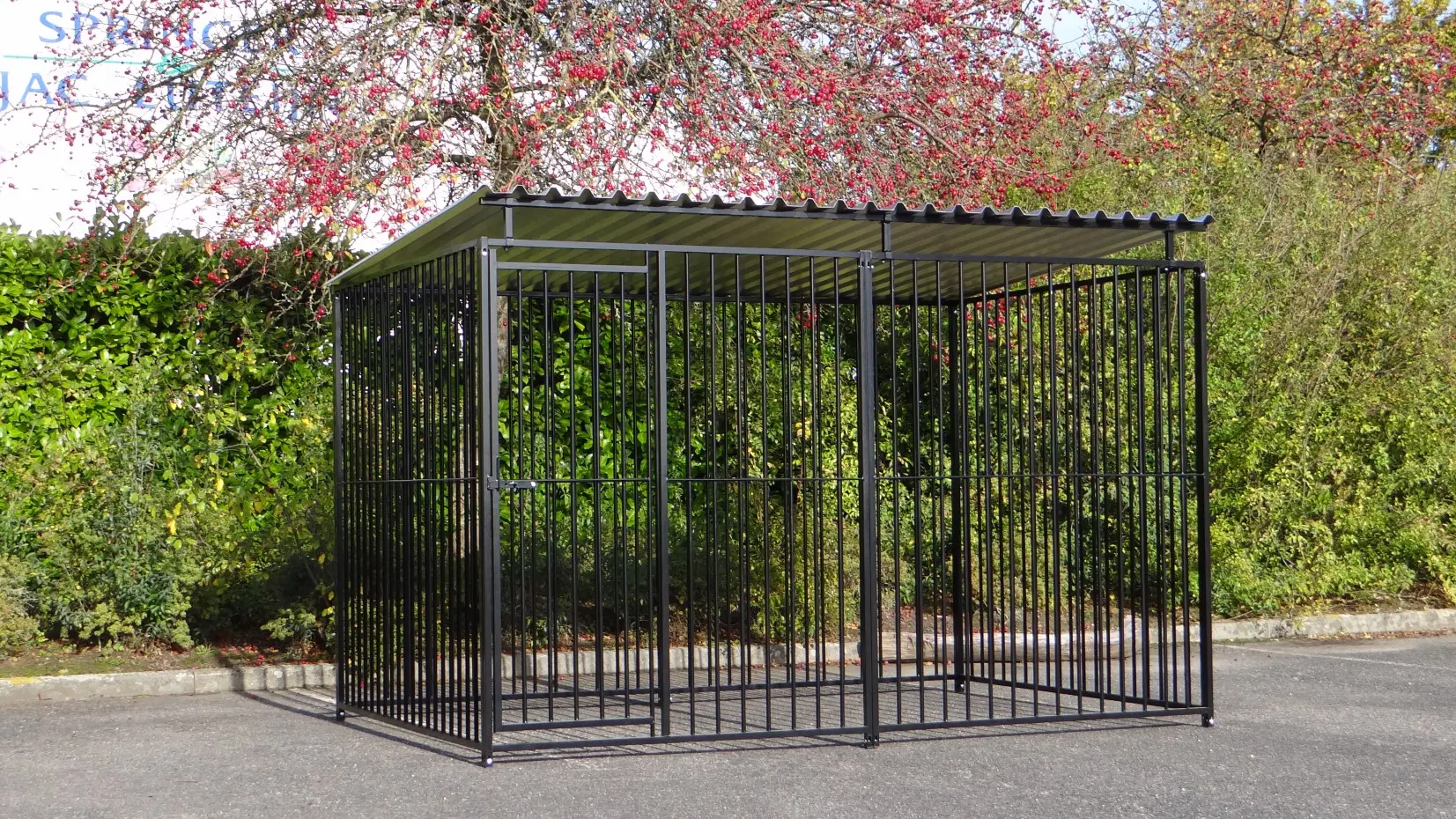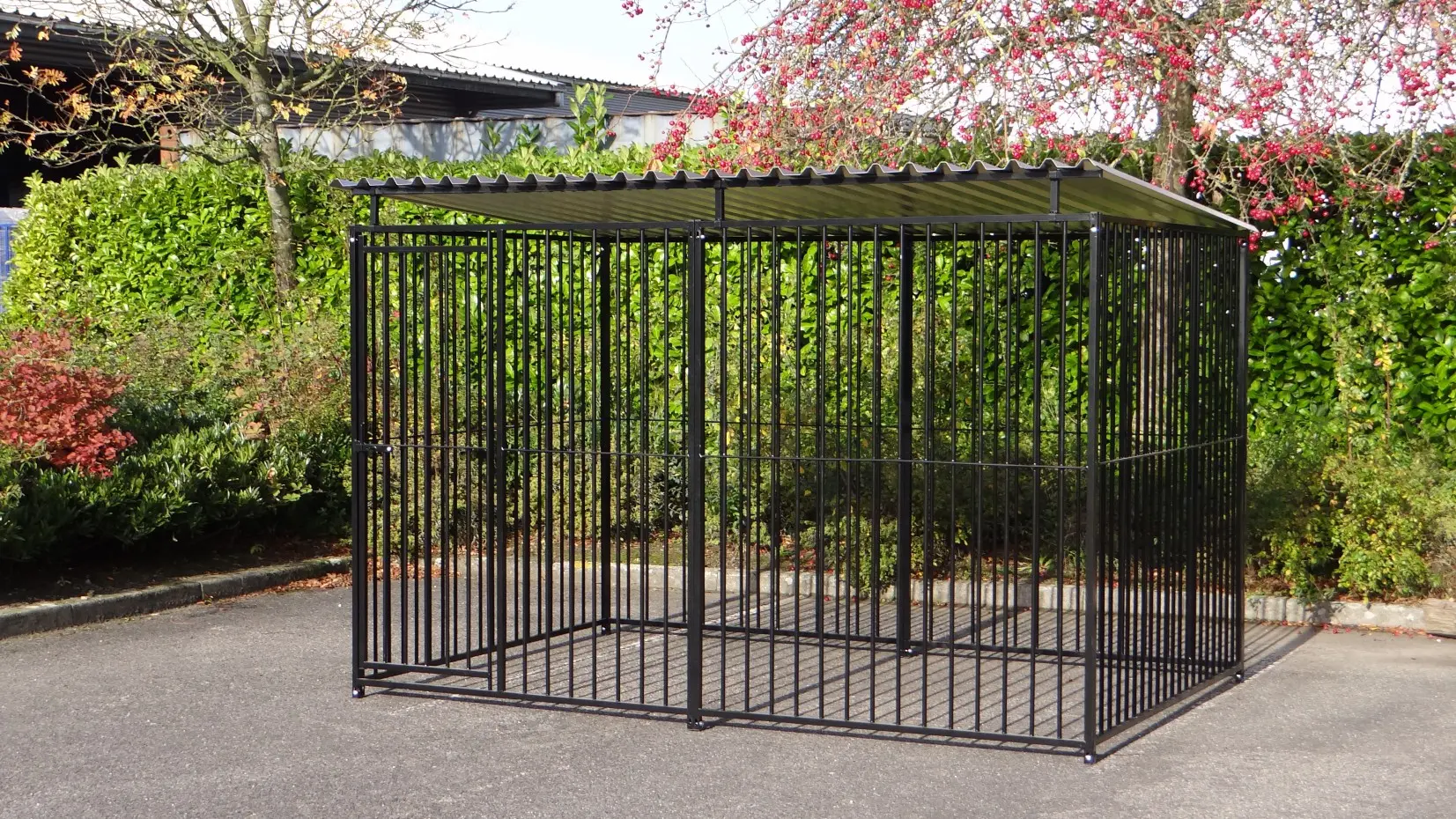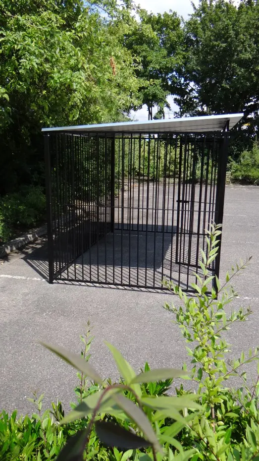 - La porte du chenil est standard sur le côté gauche, s'ouvre vers l'intérieur et peut être cadenassée