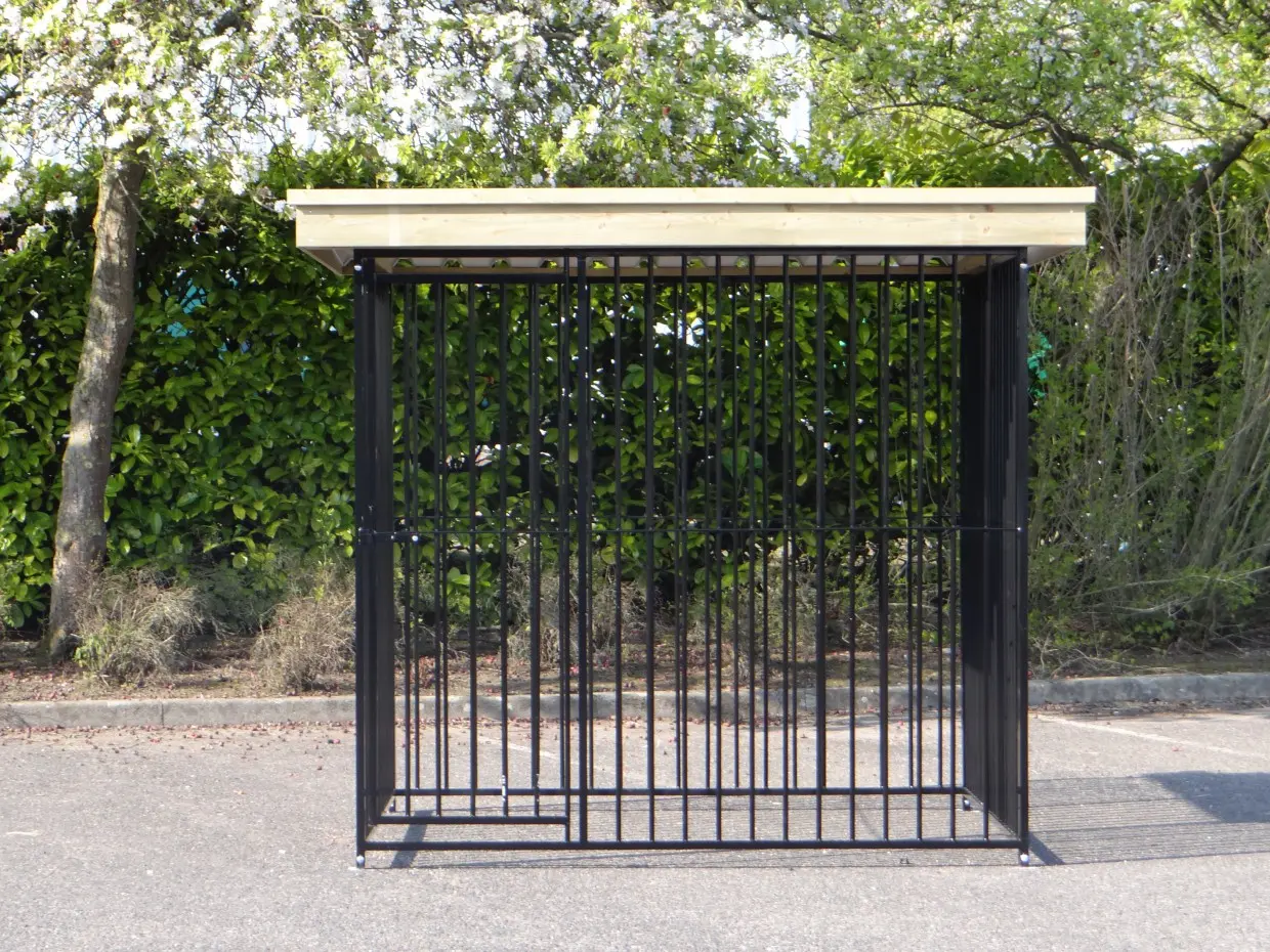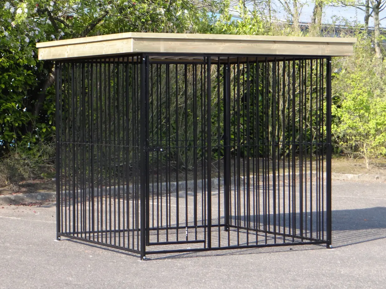 - La porte du chenil est standard sur le côté gauche, s'ouvre vers l'intérieur et peut être cadenassée