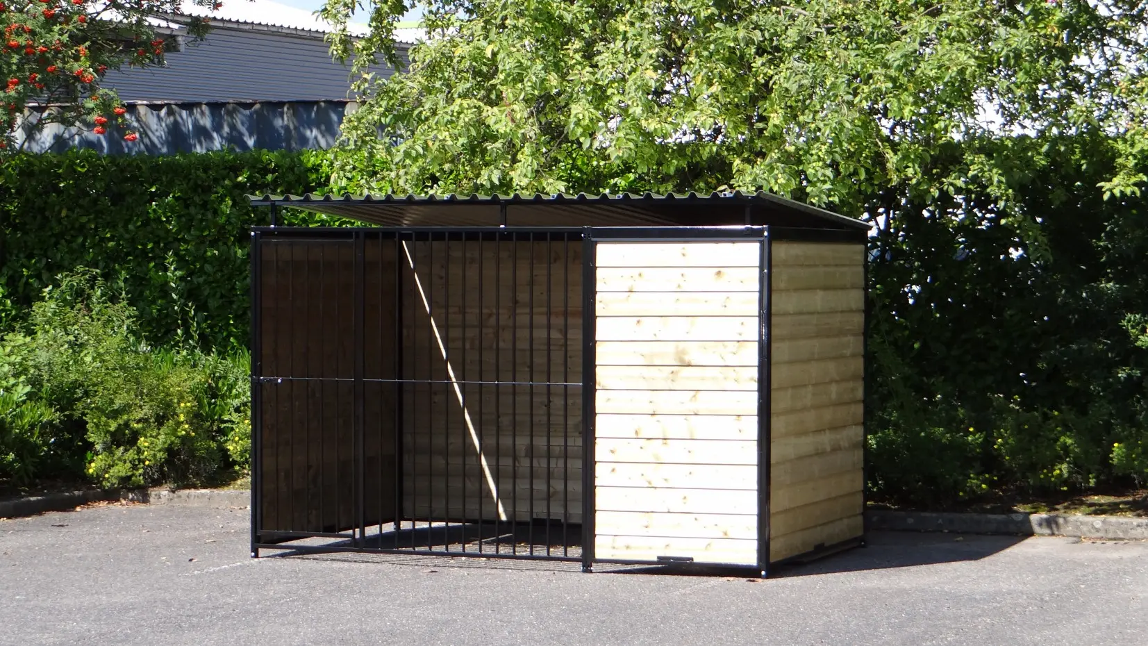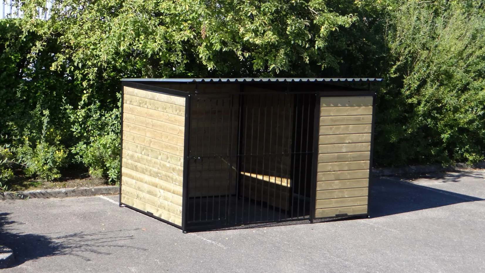 Chenil pour chien FORZ noir de 3x2 mètre est un beau chenil pour votre chien. Les panneaux sont enduit de poudre noir. Le chenil est équipé d'un toit aussi. Ce chenil est vraiment une décoration au jardin!