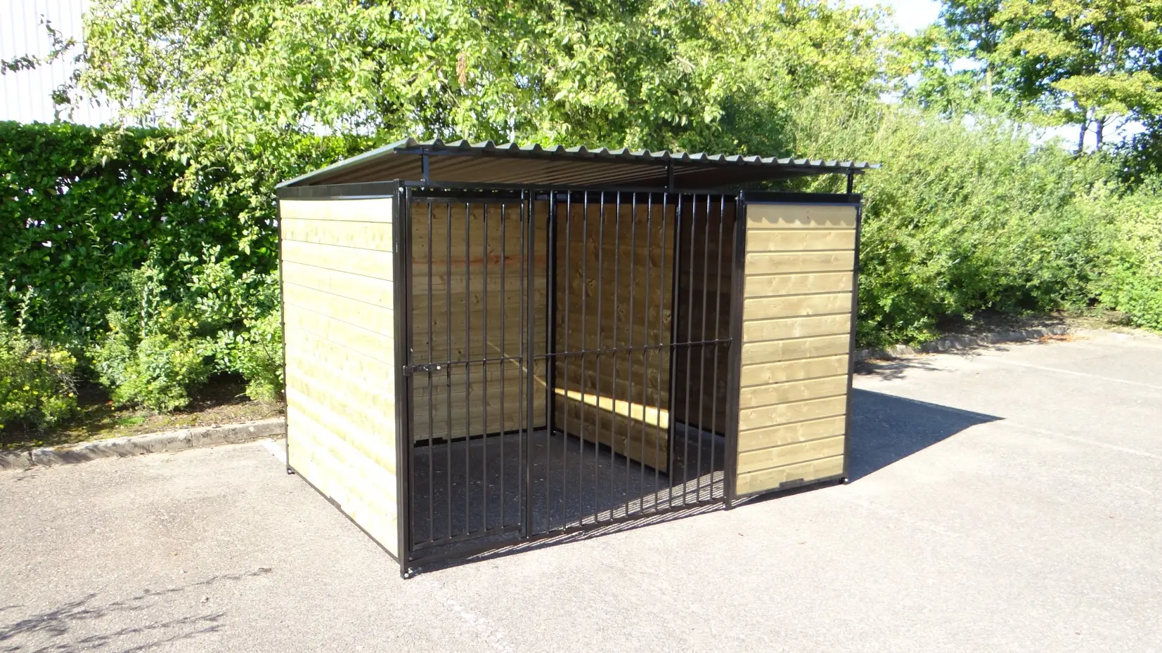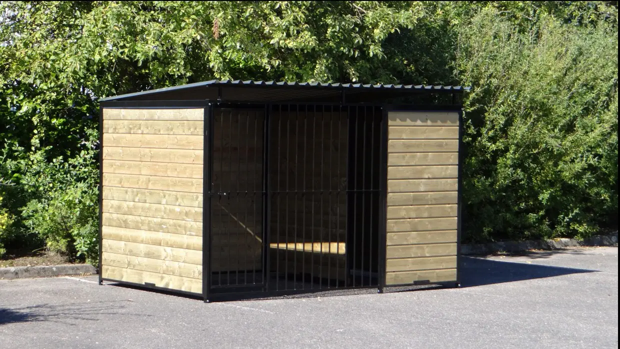 - La porte du chenil est standard sur le côté gauche, s'ouvre vers l'intérieur et peut être cadenassée