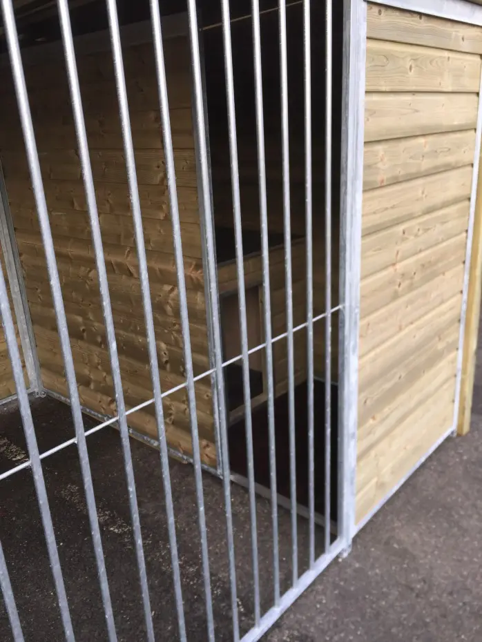 - La porte du chenil est standard sur le côté gauche, s'ouvre vers l'intérieur et peut être cadenassée