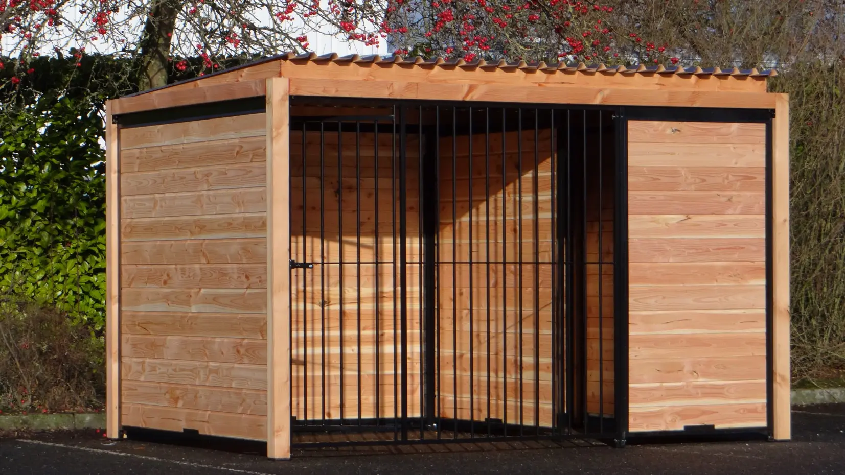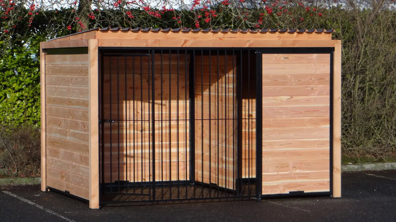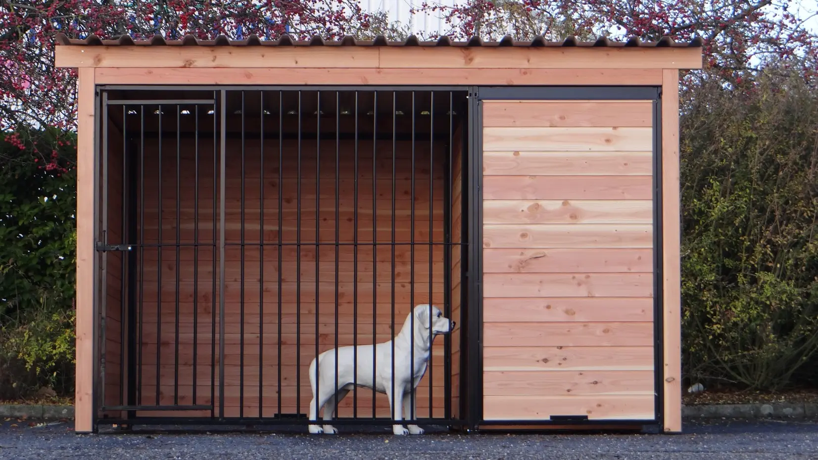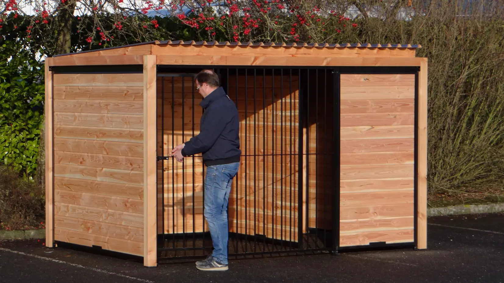 - La porte du chenil est standard sur le côté gauche, s'ouvre vers l'intérieur et peut être cadenassée