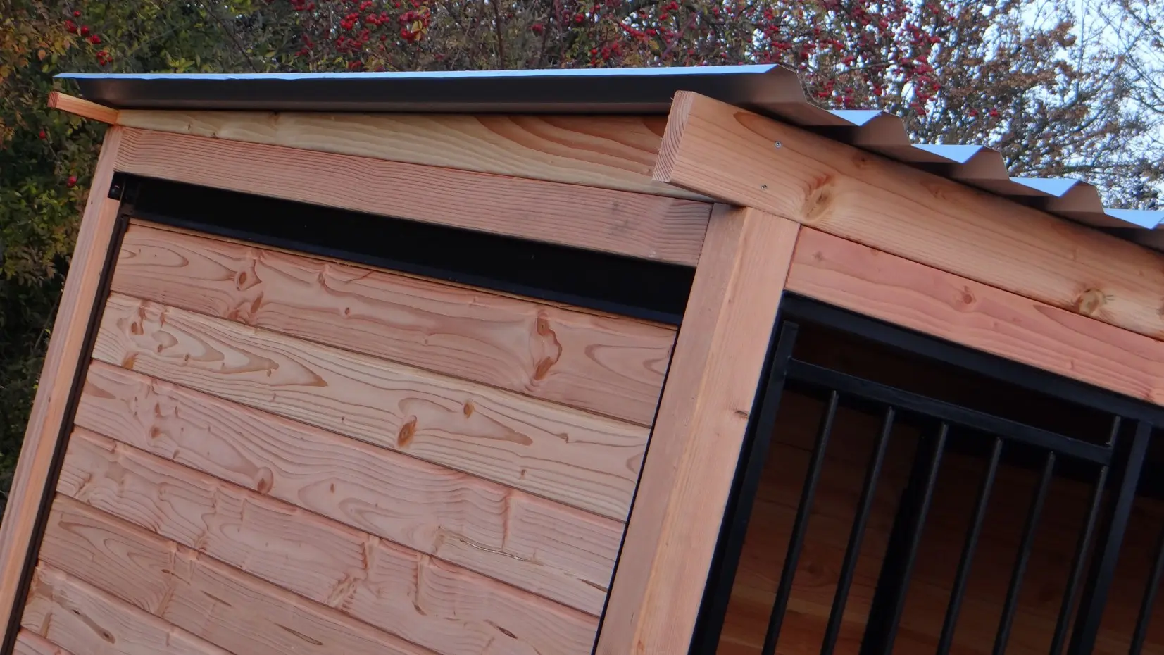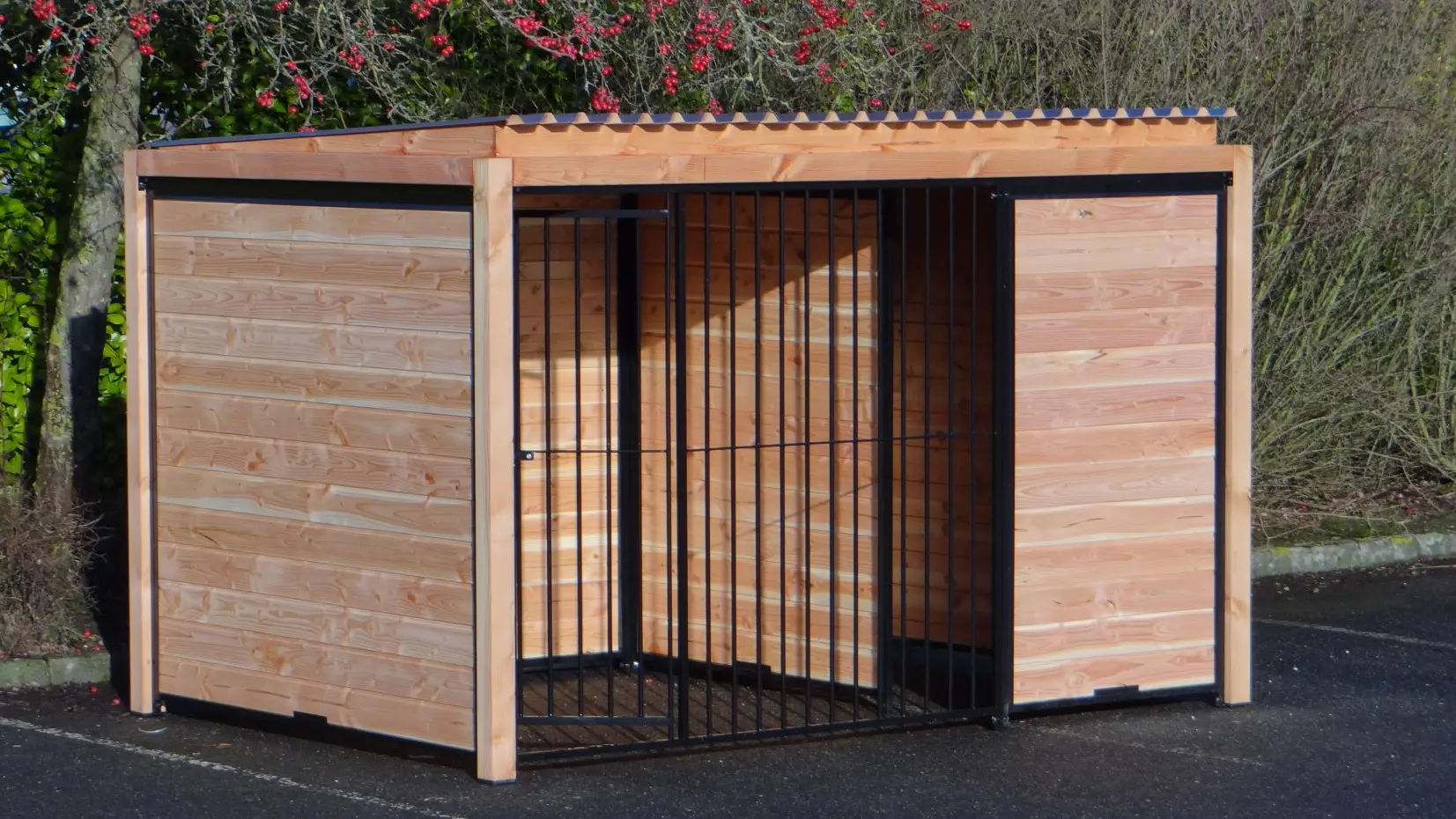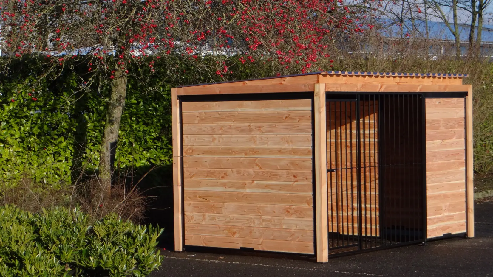 Le chenil Forz noir avec toit et cadre en bois de Douglas est un magnifique chenil offrant une protection optimale tout autour pour votre chien. Toutes les parois sont constituées de cadres en acier remplis de bois de Douglas. Derrière le panneau de séparation, il est possible de placer une niche, comme par exemple la niche Easy, ou d’installer une terrasse en bois afin de créer un espace abrité pour votre chien.