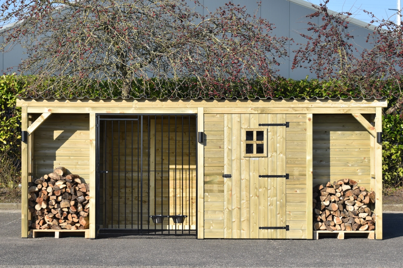 - Les murs en bois protègent du vent, de la pluie et du soleil. Cela crée un meilleur climat au chenil, tout au long de l'année.