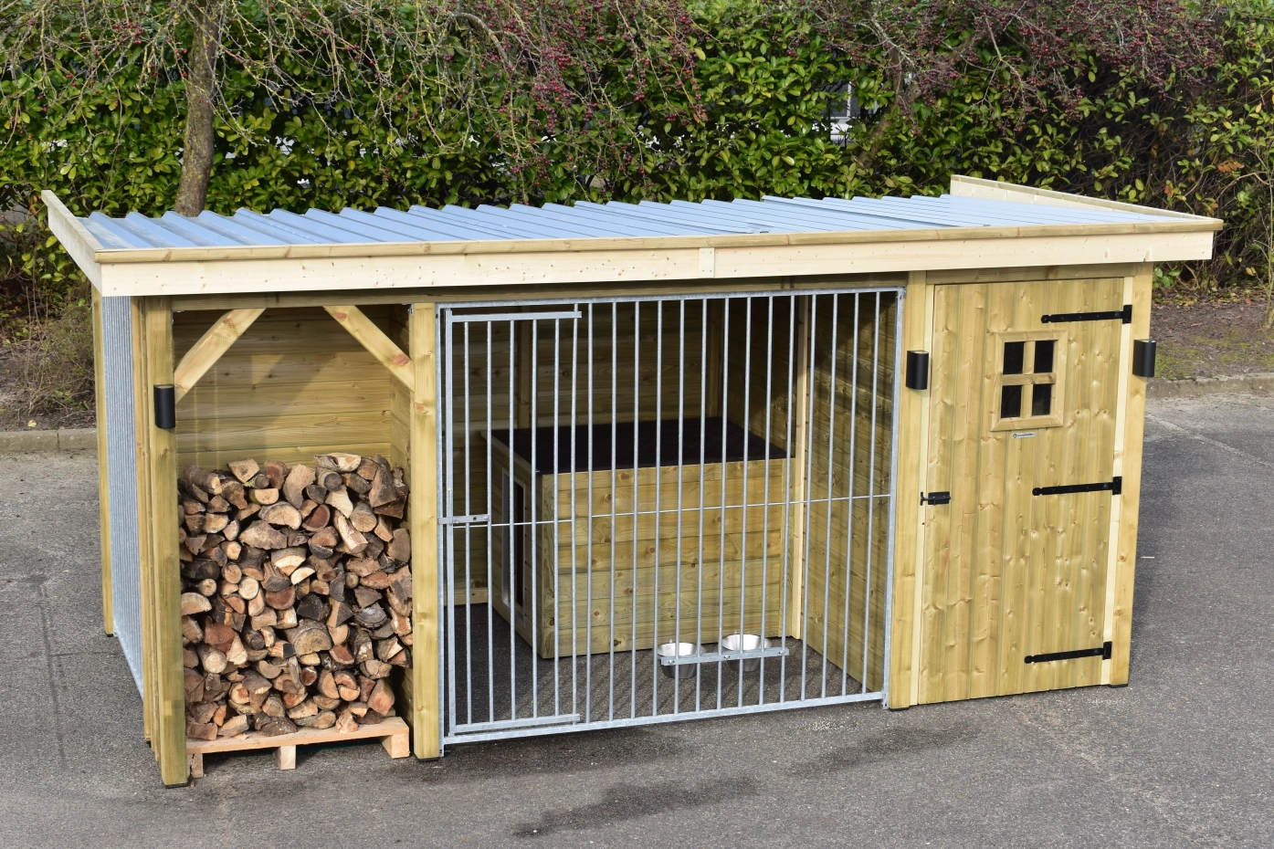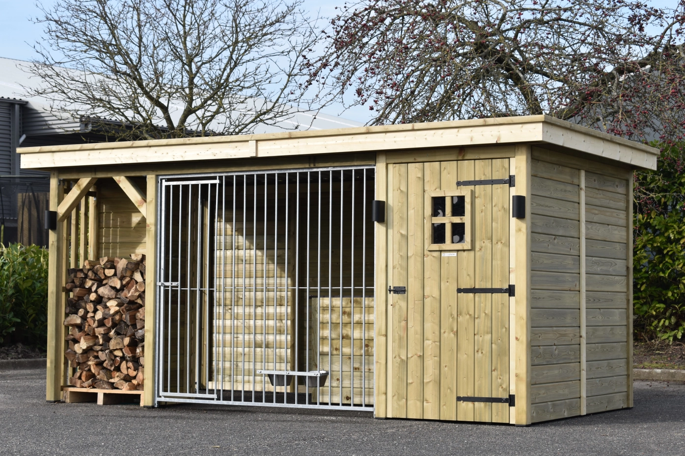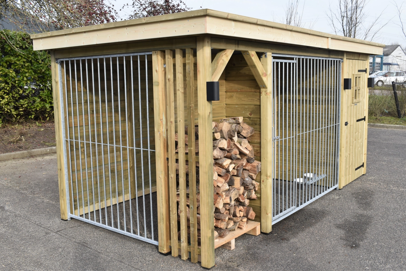 Chenil pour chien Modul COMBI avec espace du stockage et espace pour bois du chauffage