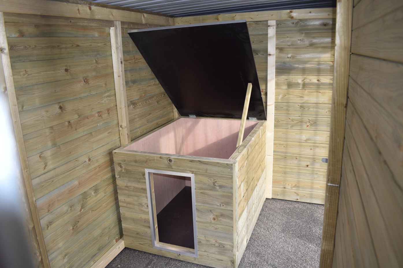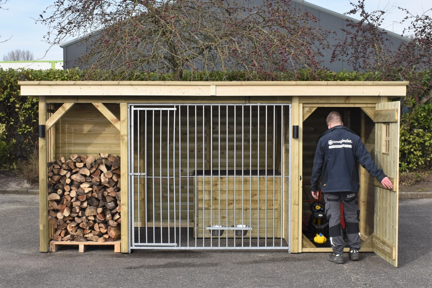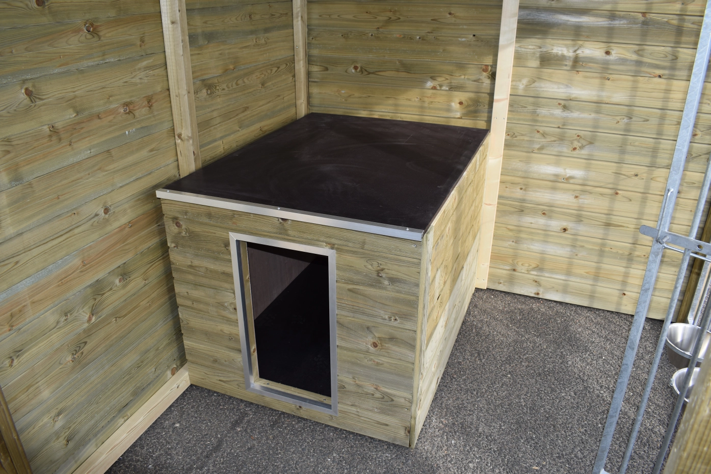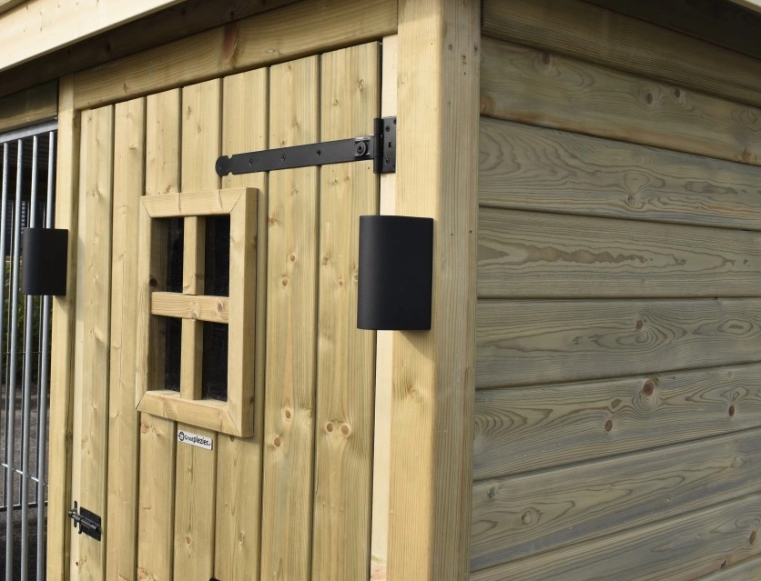 - Les murs en bois protègent du vent, de la pluie et du soleil. Cela crée un meilleur climat au chenil, tout au long de l'année.