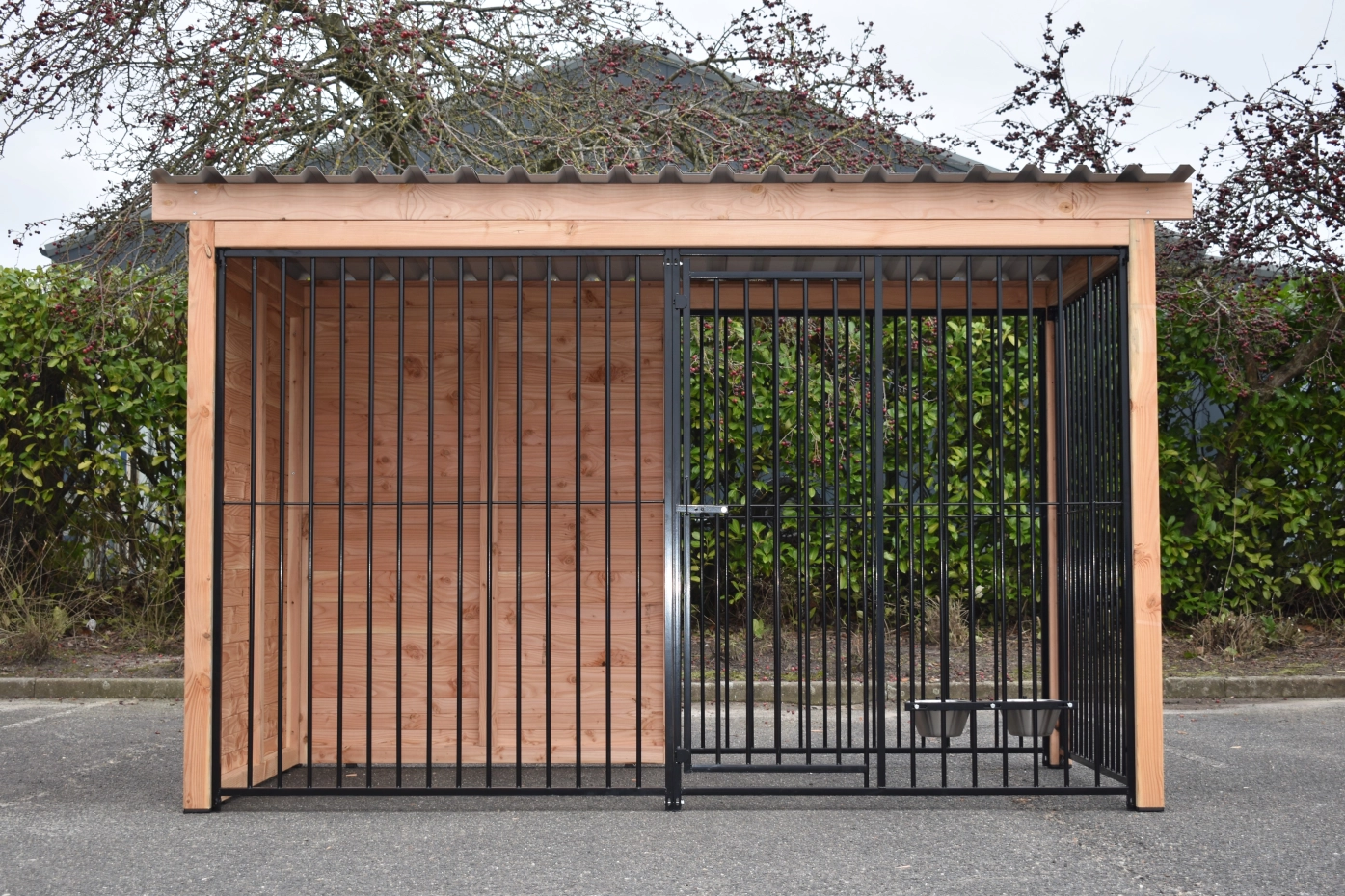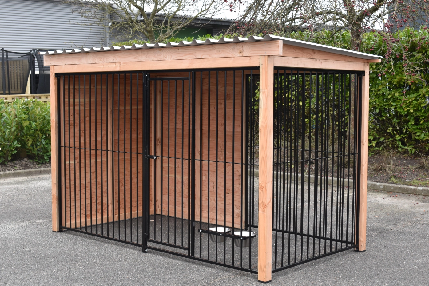 - La porte du chenil est standard sur le côté gauche, s'ouvre vers l'intérieur et peut être cadenassée