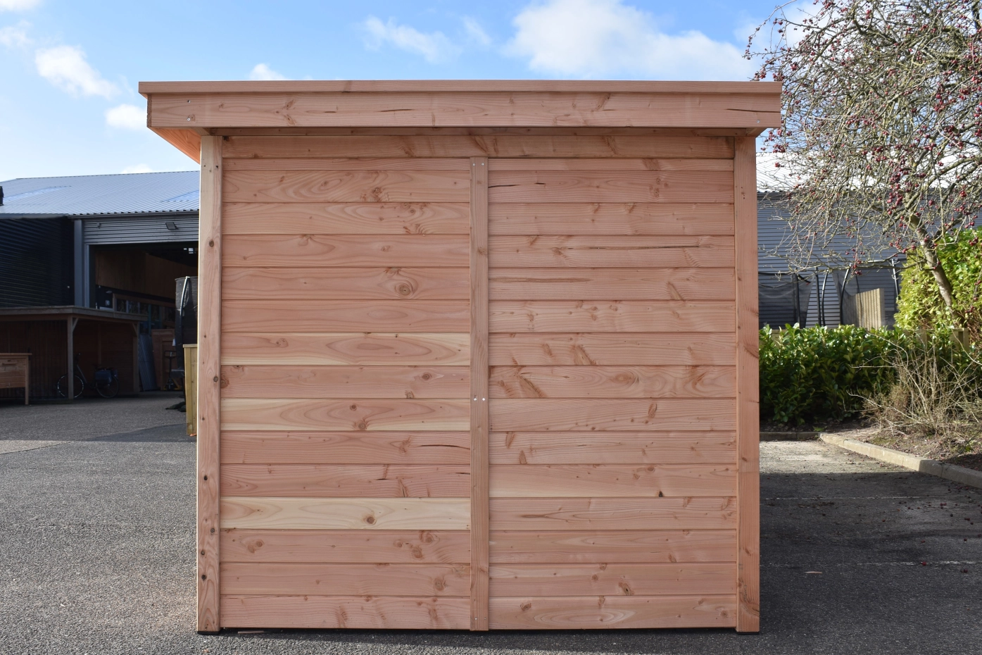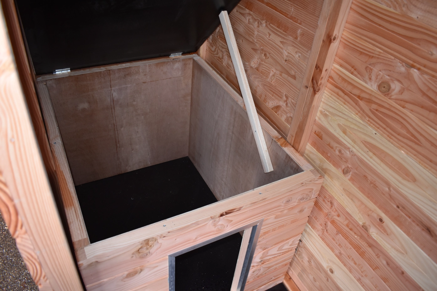 - En bois de Douglas, avec des cadres de 68x44mm, des planches avec un épaisseur de 18mm. Même sans traitement du bois, le bois est durable pour 15 ans, mais le bois se devient gris vite si vous n'utilisez pas des huile pour le Douglas.
