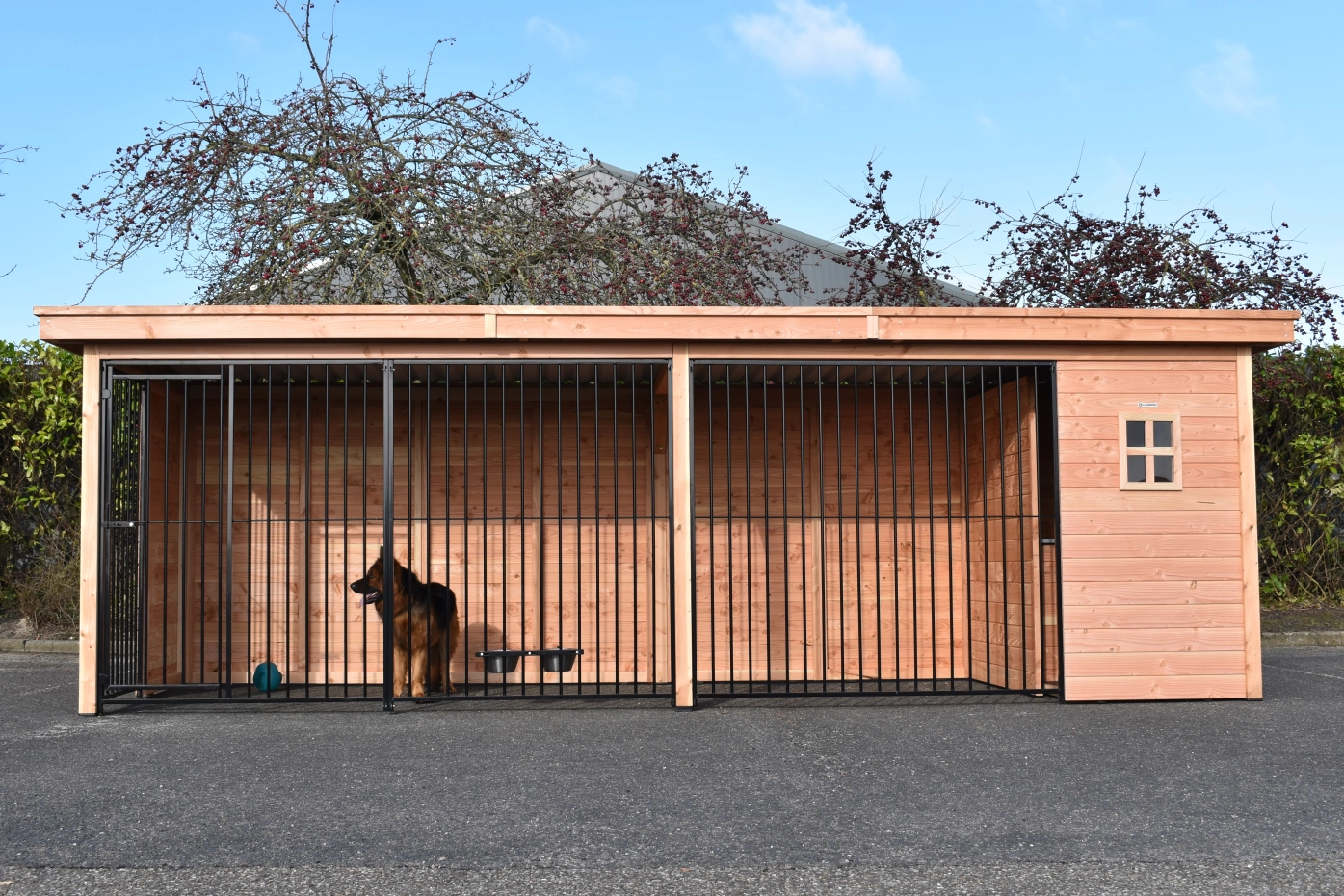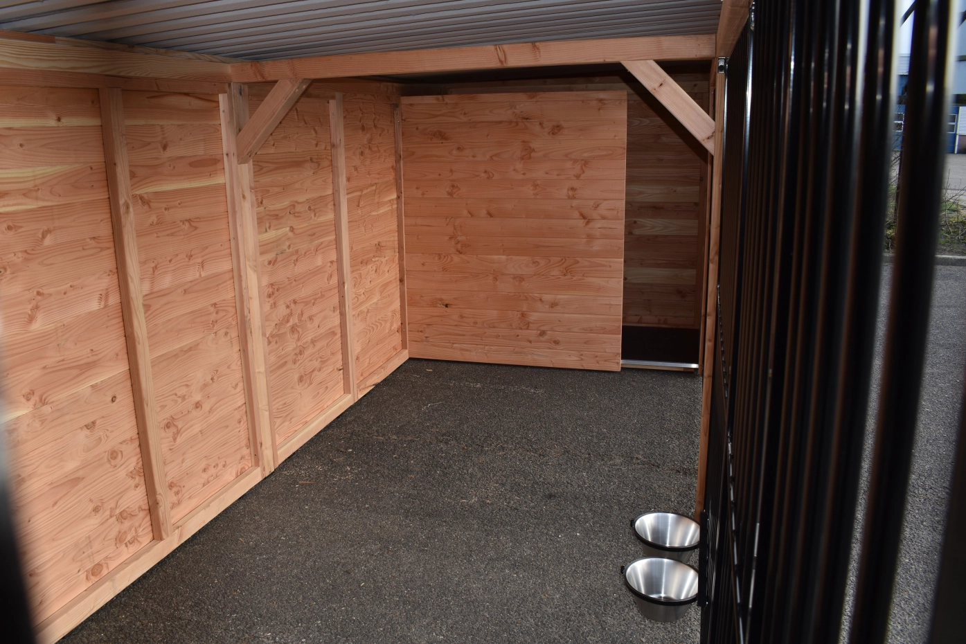 - Les murs en bois protègent du vent, de la pluie et du soleil. Cela crée un meilleur climat au chenil, tout au long de l'année.