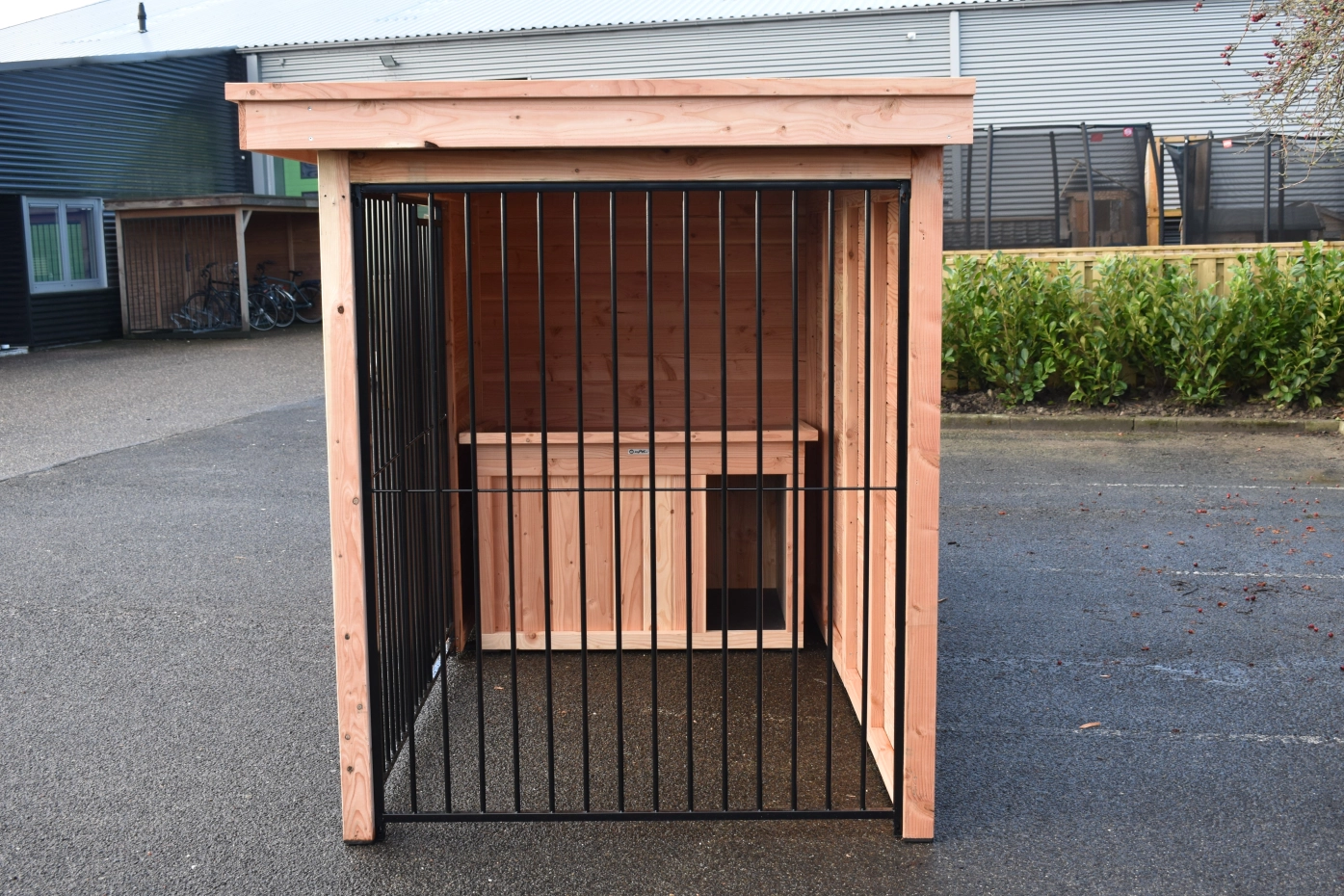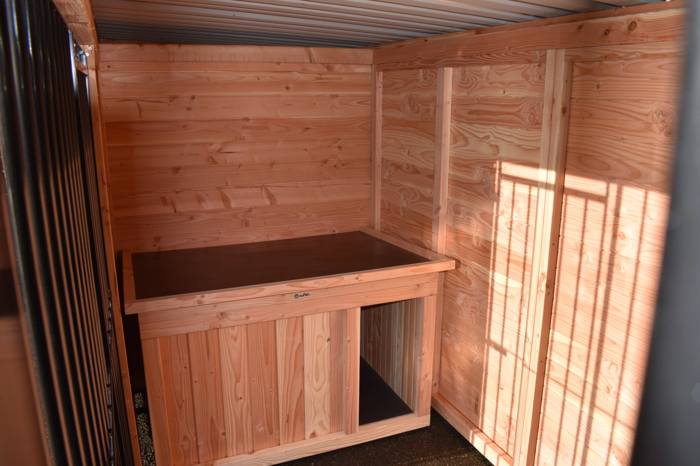 - La porte du chenil est standard sur le côté gauche, s'ouvre vers l'intérieur et peut être cadenassée
