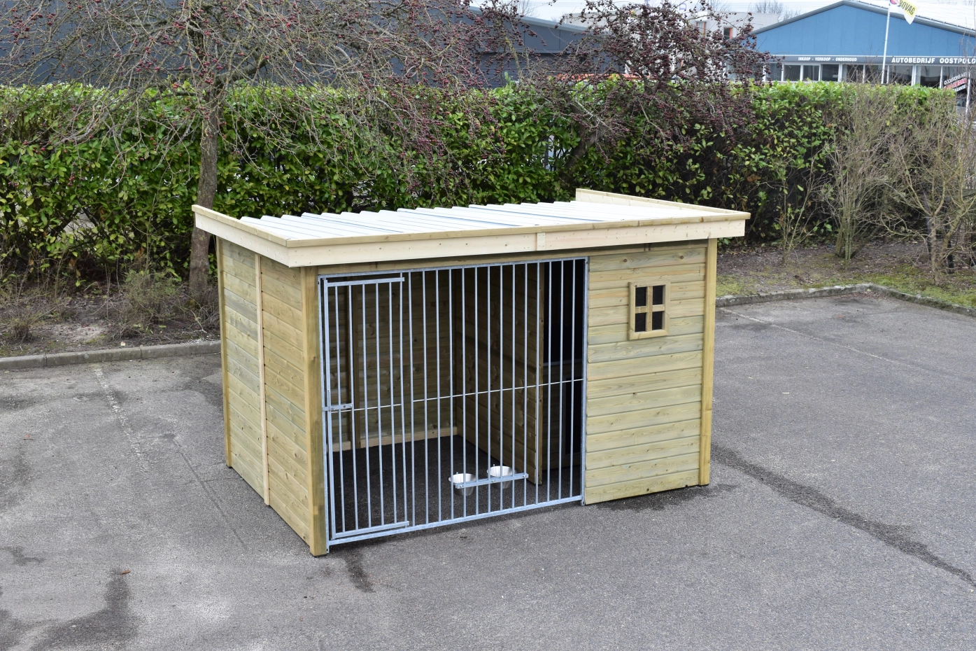 Le chenil pour chien Modul FORZ est fabriquée en bois d'épicéa impregné et est équipée avec panneaux galvanisées. Le chenil est équipée avec un système d'alimentation et une niche isolée. Le chenil en bois est équipée avec une fenêtre. Un achat pour votre jardin!