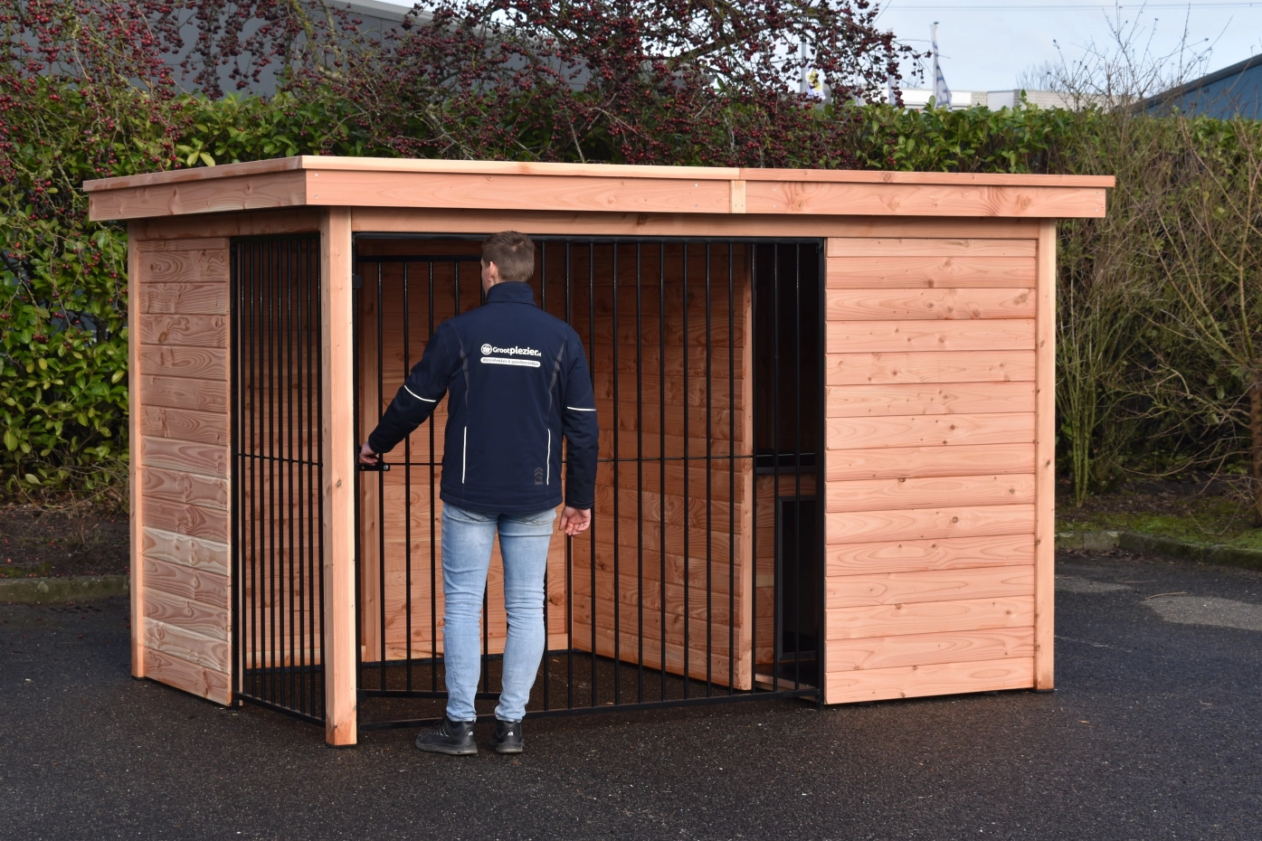 - La porte du chenil est standard sur le côté gauche, s'ouvre vers l'intérieur et peut être cadenassée