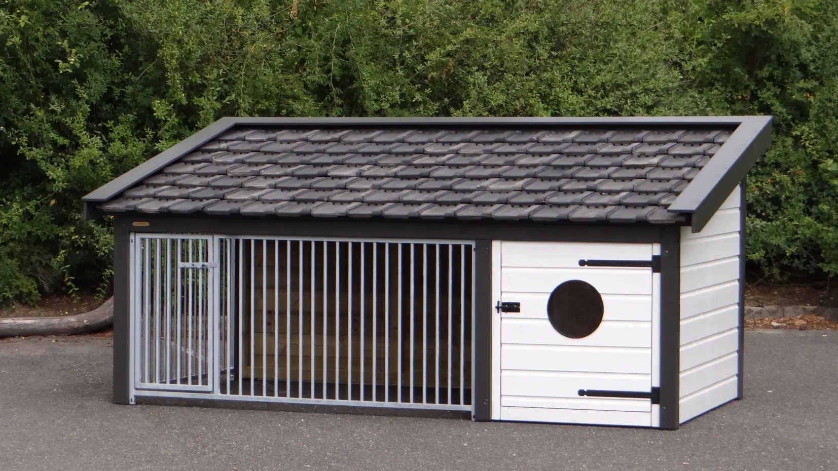 Chenil pour chien Rex 2 est fabriqué en bois d'épicéa imprégné et peint dans les couleurs blanc/anthracite. Le chenil est équipé de tuiles d'occasion, disponibles en plusieurs couleurs. Il dispose d'un grand abri de nuit avec un sol en contreplaqué. Le chenil est équipé de 2 panneaux à barreaux galvanisés. Il est livré en kit de montage.