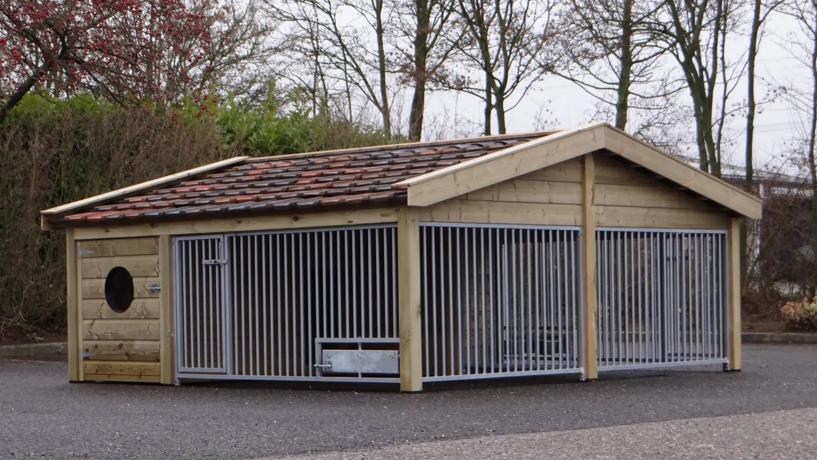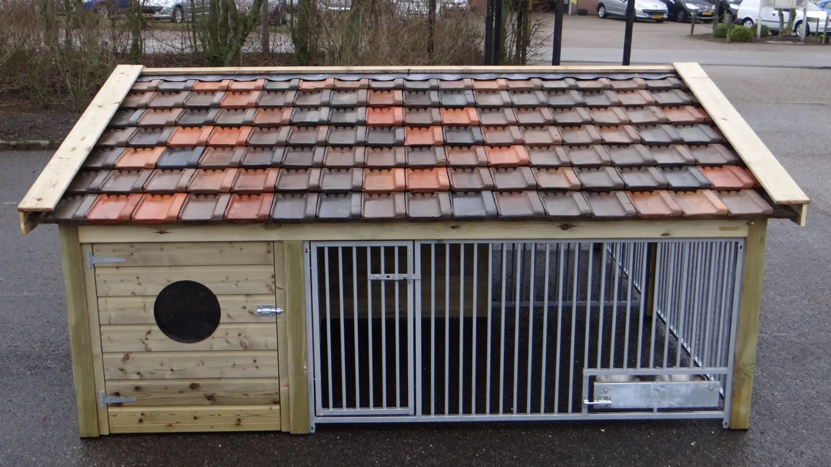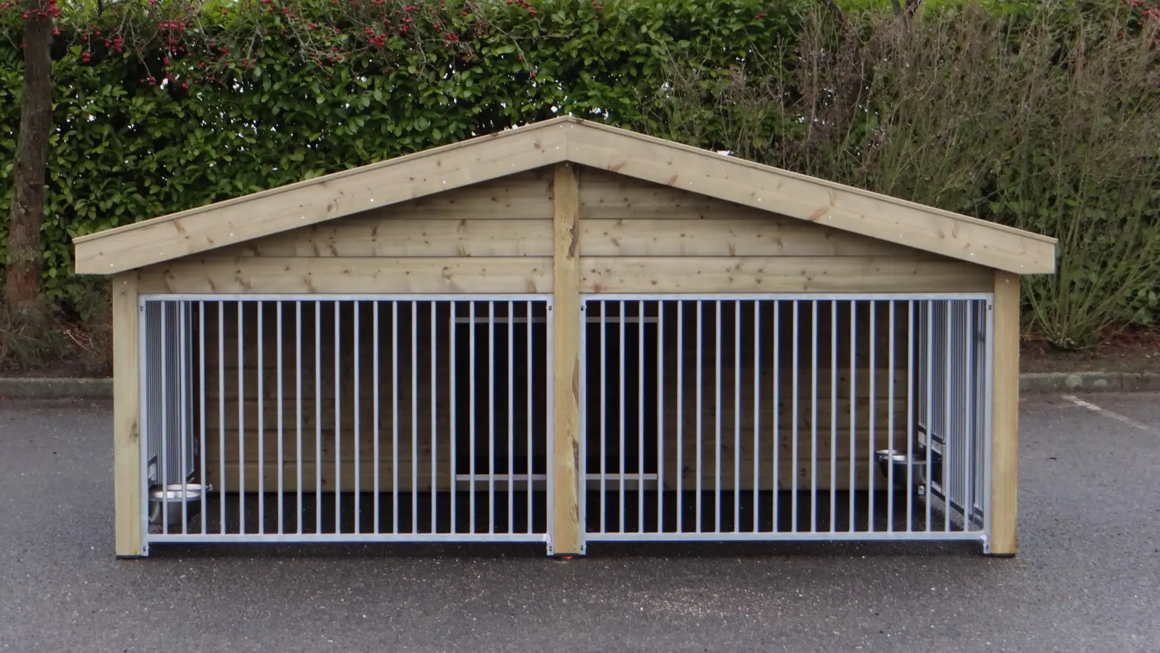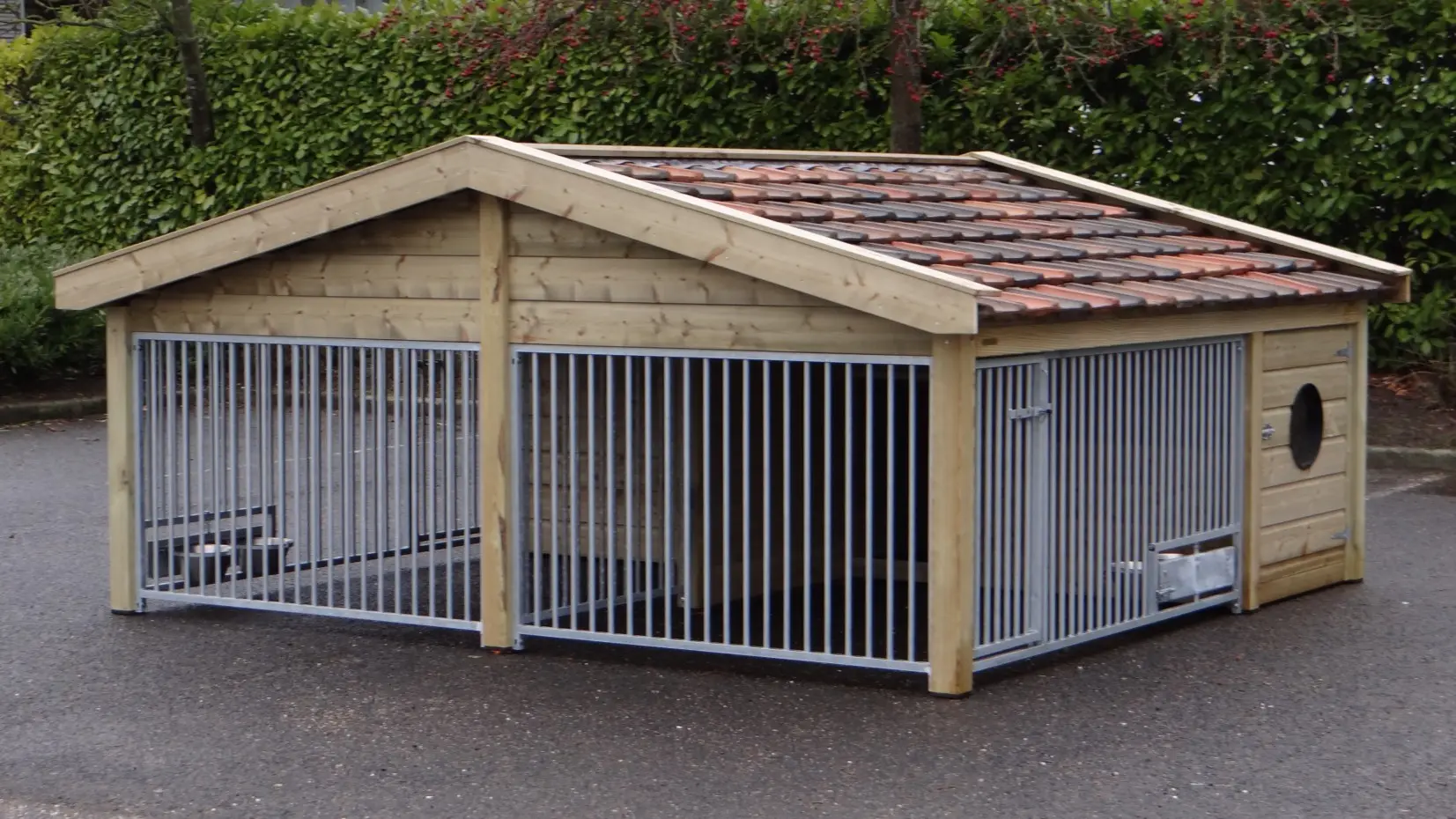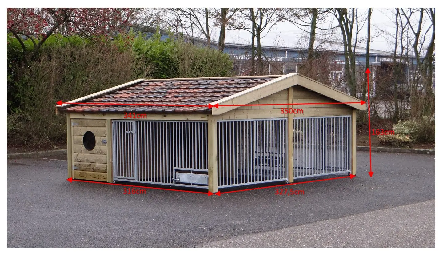 Le chenil pour chiens Rex 2 Compart est fabriqué en bois d’épicéa imprégné et équipé de tuiles en céramique restaurées. Ce chenil double est robuste et élégant, avec deux espaces de course spacieux et deux grandes niches pour chiens. Cela rend le chenil Rex Compart idéal pour loger deux chiens tout en les gardant séparés. Les deux enclos pour chiens peuvent être équipés en option d’un support d’alimentation rotatif. Les panneaux du chenil sont galvanisés à chaud, et les abris de nuit disposent d’un sol en bétonplex.