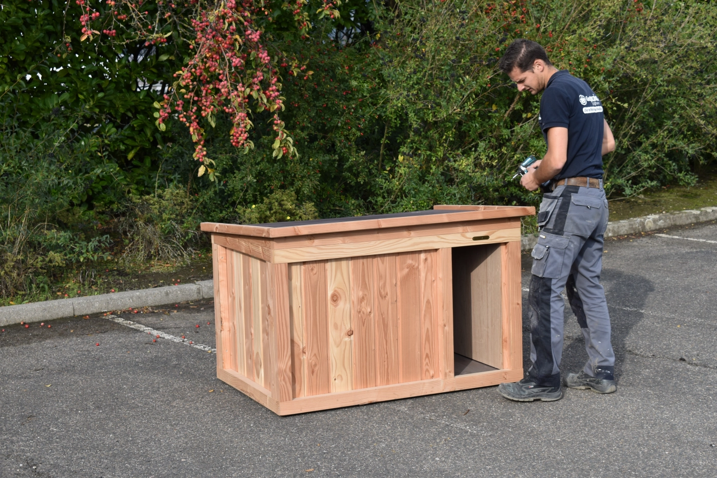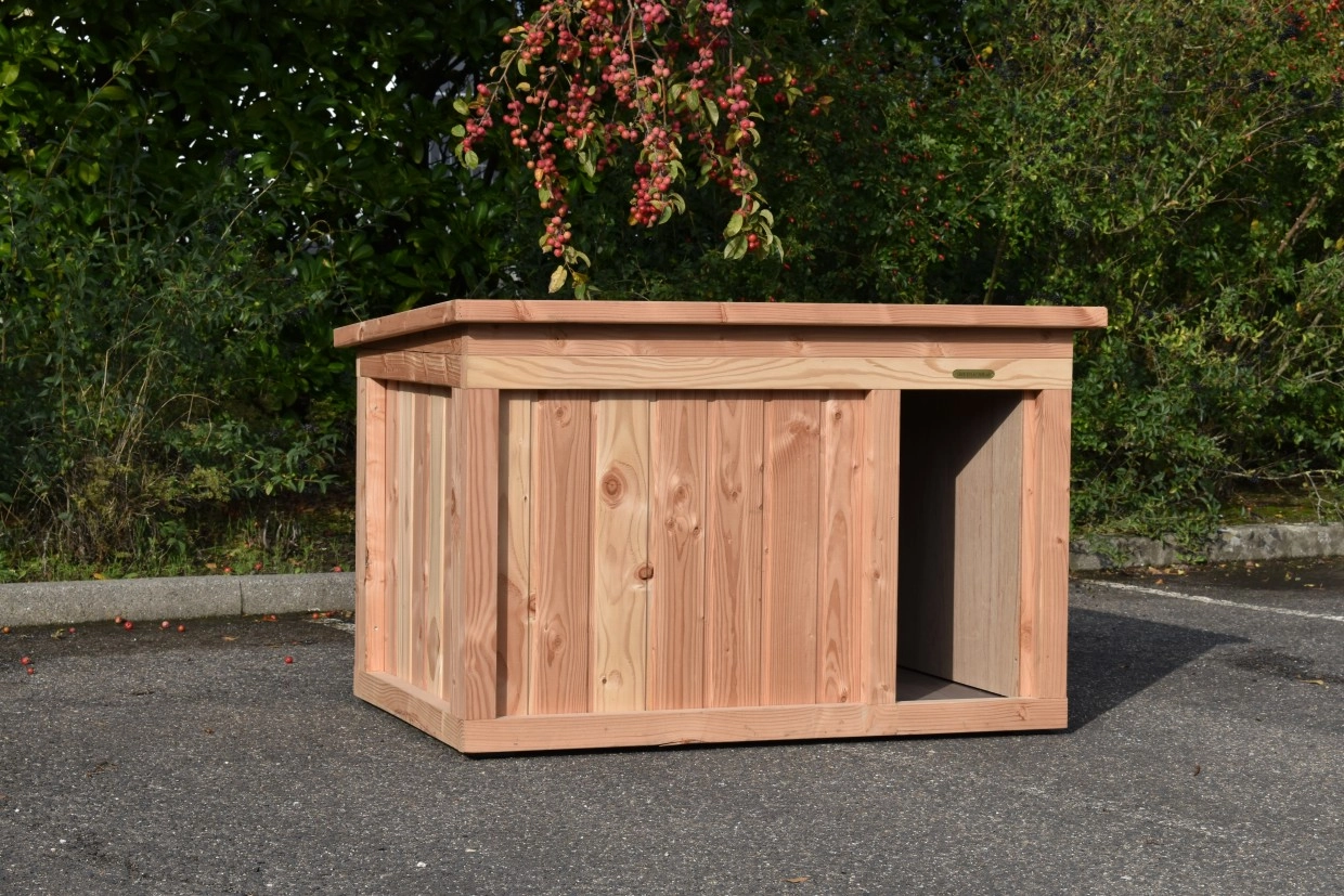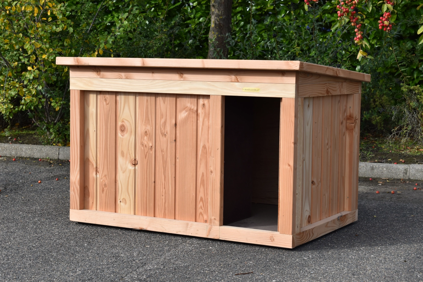 Chenil pour chien Block Large est fabriquée en bois de Douglas. C'est approprié en l'hiver et l'été pour chiens de grande taille, comme un Chien de berger, Retriever, Rottweiler, Boxer, Bouvier Bernois, etc. La niche fermée est disponible à 3 tailles différentes.