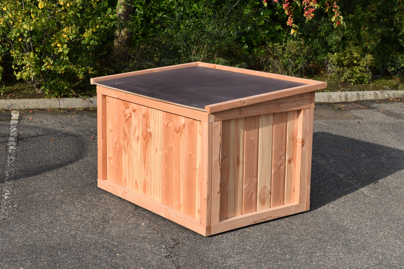 - En bois de Douglas, avec des cadres de 68x44mm, des planches avec un épaisseur de 18mm. Même sans traitement du bois, le bois est durable pour 15 ans, mais le bois se devient gris vite si vous n'utilisez pas des huile pour le Douglas.