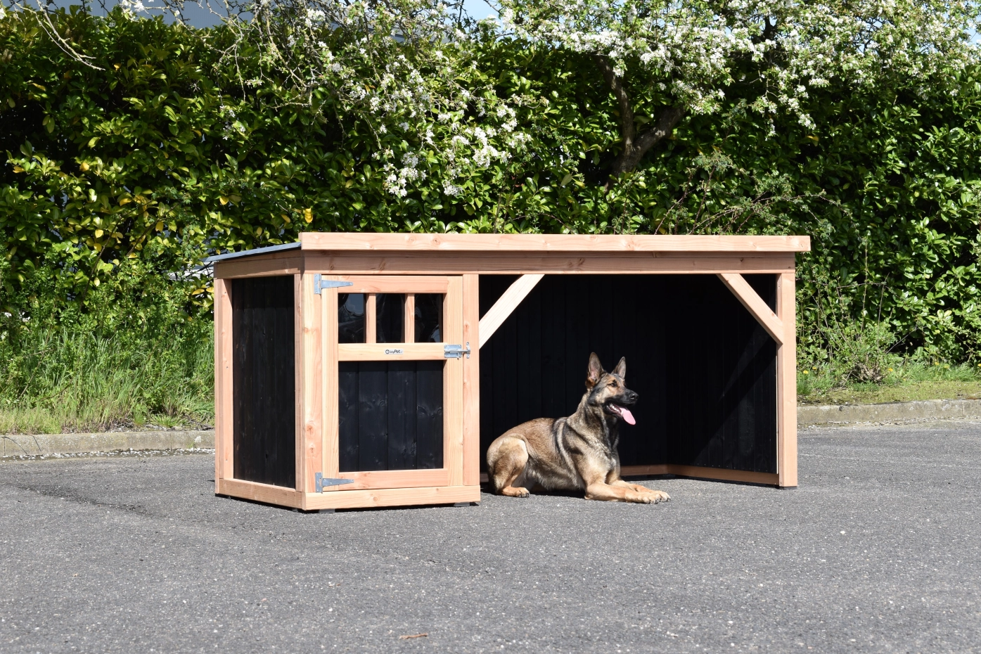 Chenil pour chien Isa 1 a un véranda couverte et est approprié pour chiens de taille moyenne. La niche fermée a un sol en bois et un grande porte. Le véranda offre beaucoup d'espace pour votre chien. Vous pouvez commander un sol pour le véranda aussi. La niche est fabriquée dans bois de Douglas.