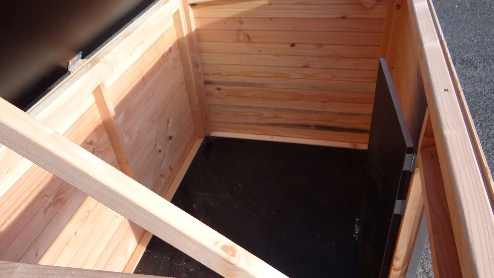 - La niche a des pieds en plastique noir, ce qui la rend plus facile à déplacer, et la niche sera mieux protégée contre l'humidité