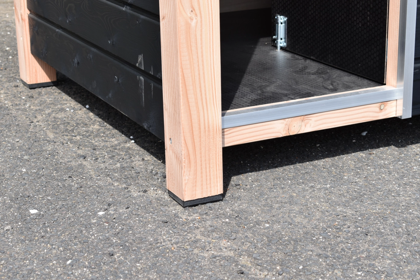 - Les bords en bois non protégés peuvent être munis de bandes d'aluminium pour éviter les rongements. Vous pouvez demander ceci par email. Le prix pour cela est de € 9,00 par mètre (y compris l'assemblage).