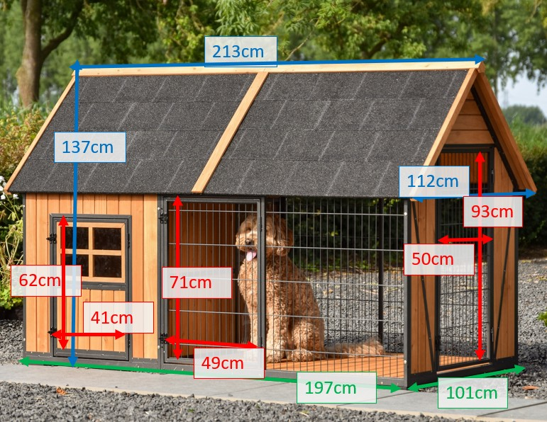 Avec son toit pointu caractéristique, ses trois portes d’accès et son plancher en bois, cette niche est non seulement pratique, mais aussi agréable à utiliser. La niche fermée spacieux offre protection et confort, tandis que l’enclos attenant permet au chien de s’allonger, de bouger et de profiter de l’air frais. Cette niche convient aux chiens de petite à moyenne taille – un refuge confortable pour votre fidèle compagnon à quatre pattes !