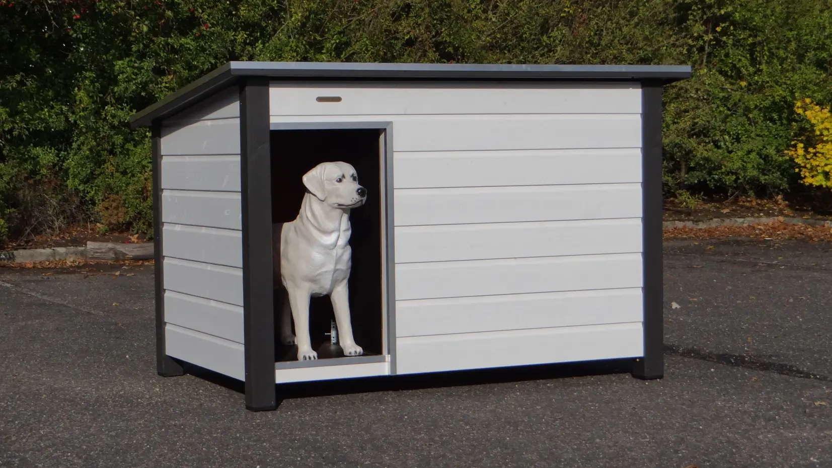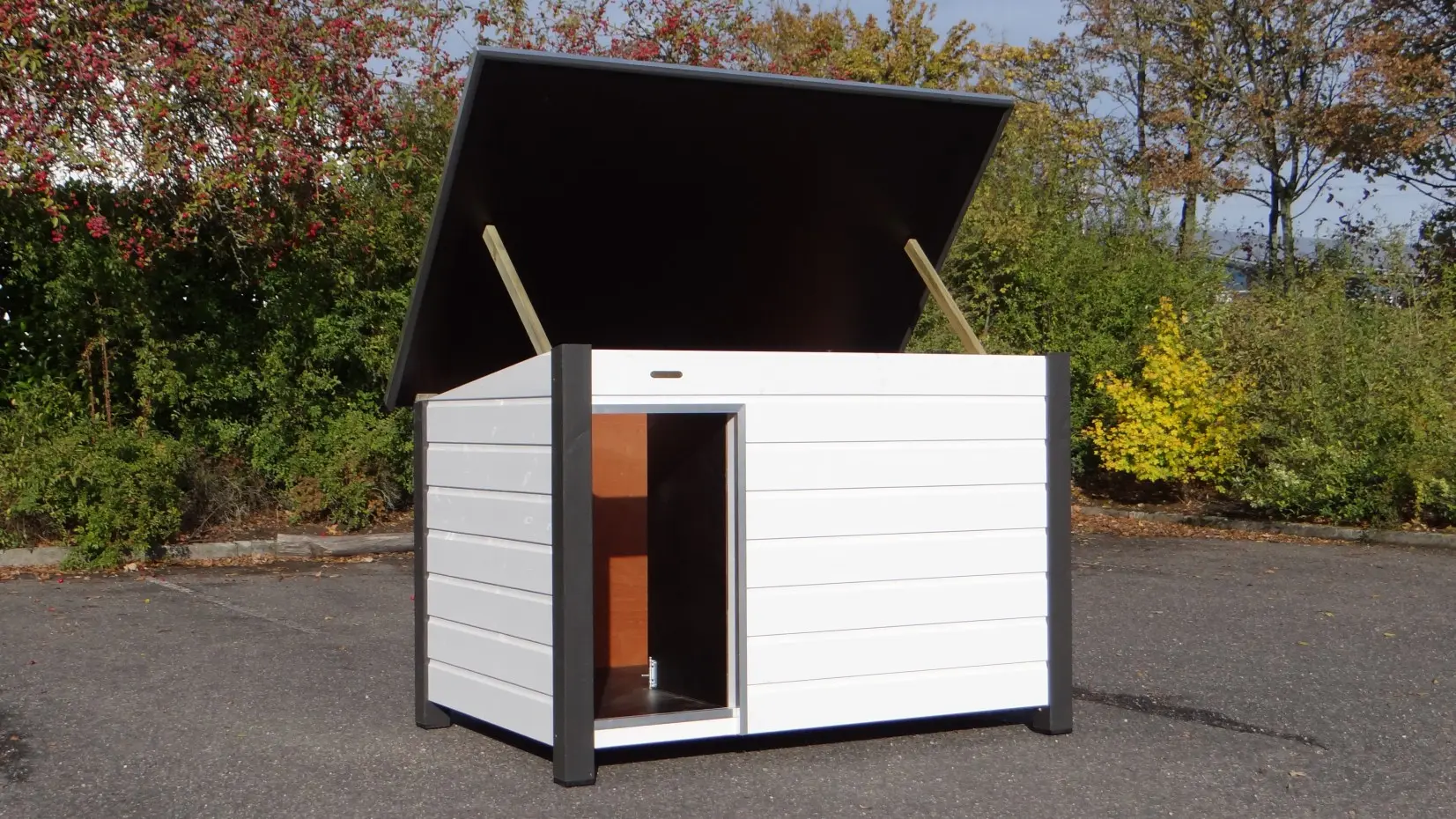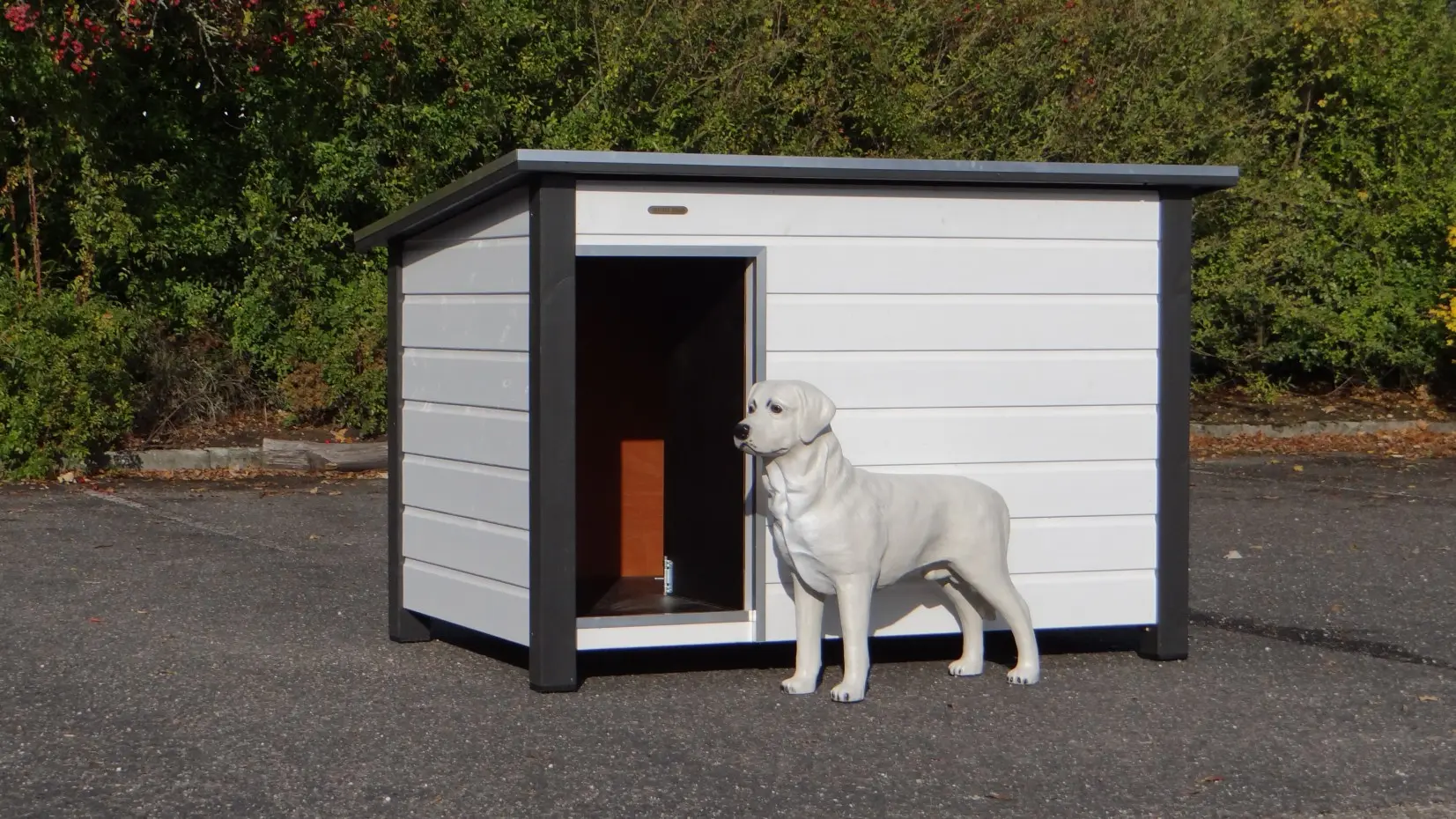 Vous cherchez une grande niche solide ? La niche fermée Loebas blanc-gris allie qualité, durabilité et praticité. Dimensions : 185×125×122 cm. Le toit plat en contreplaqué béton, bordé d’aluminium et doté d’une surface antidérapante, s’ouvre pour un accès facile. Le plancher est également en contreplaqué béton avec surface antidérapante. Équipée d’une cloison coupe-vent, d’une entrée protégée par de l’aluminium et de parois et sol isolés pour mieux conserver la chaleur.
