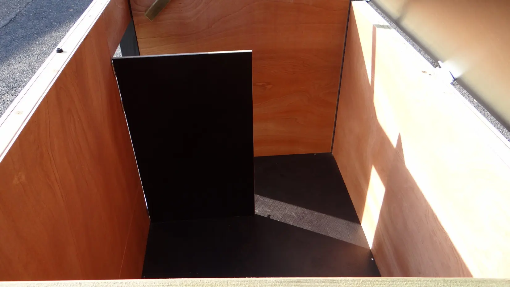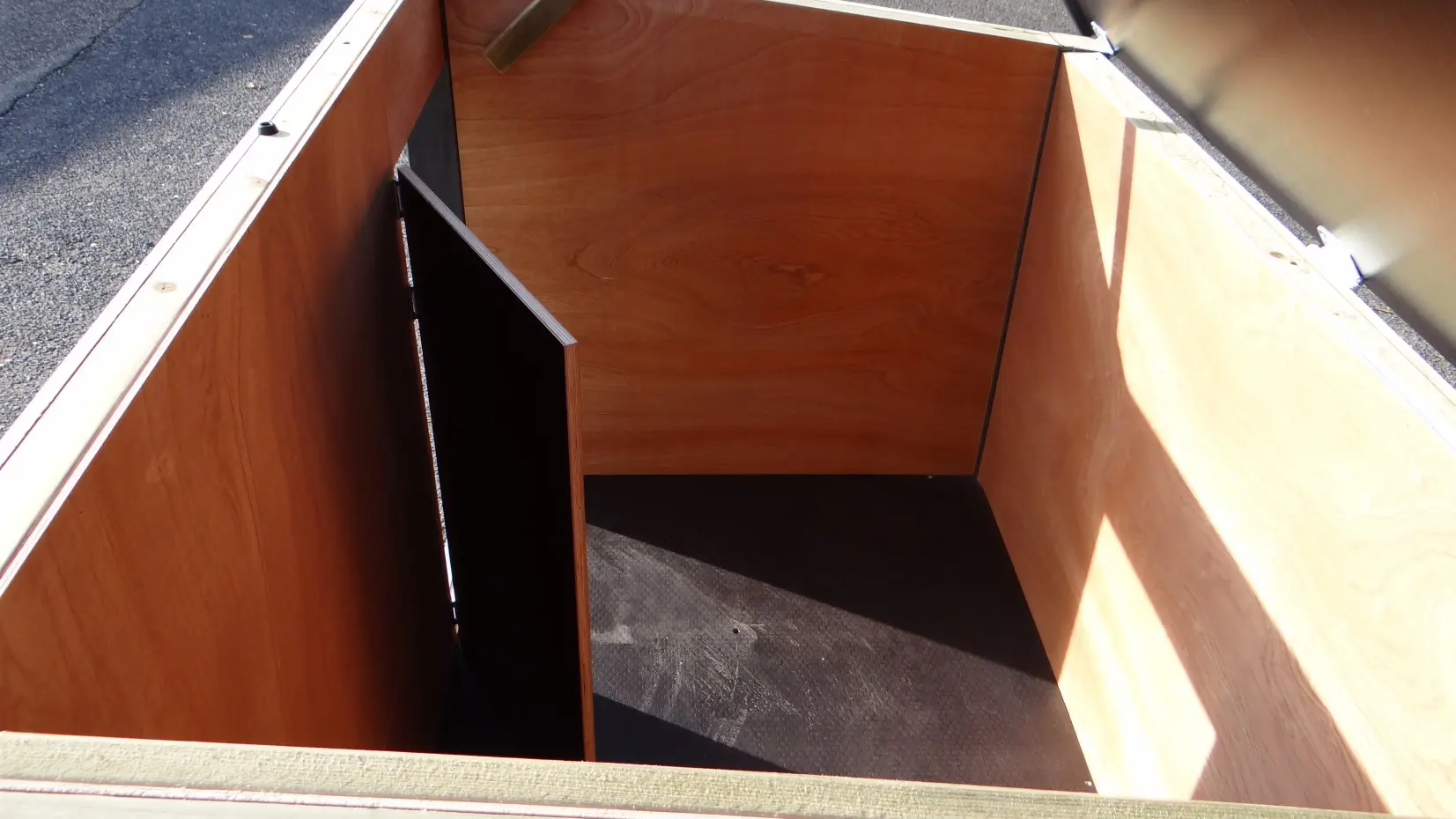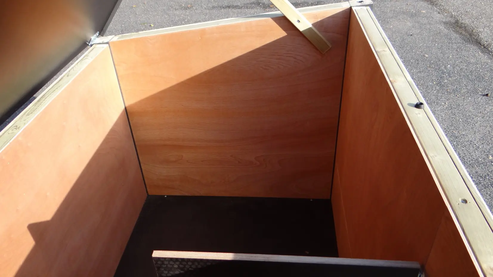 - L’intérieur est revêtu de contreplaqué dur.